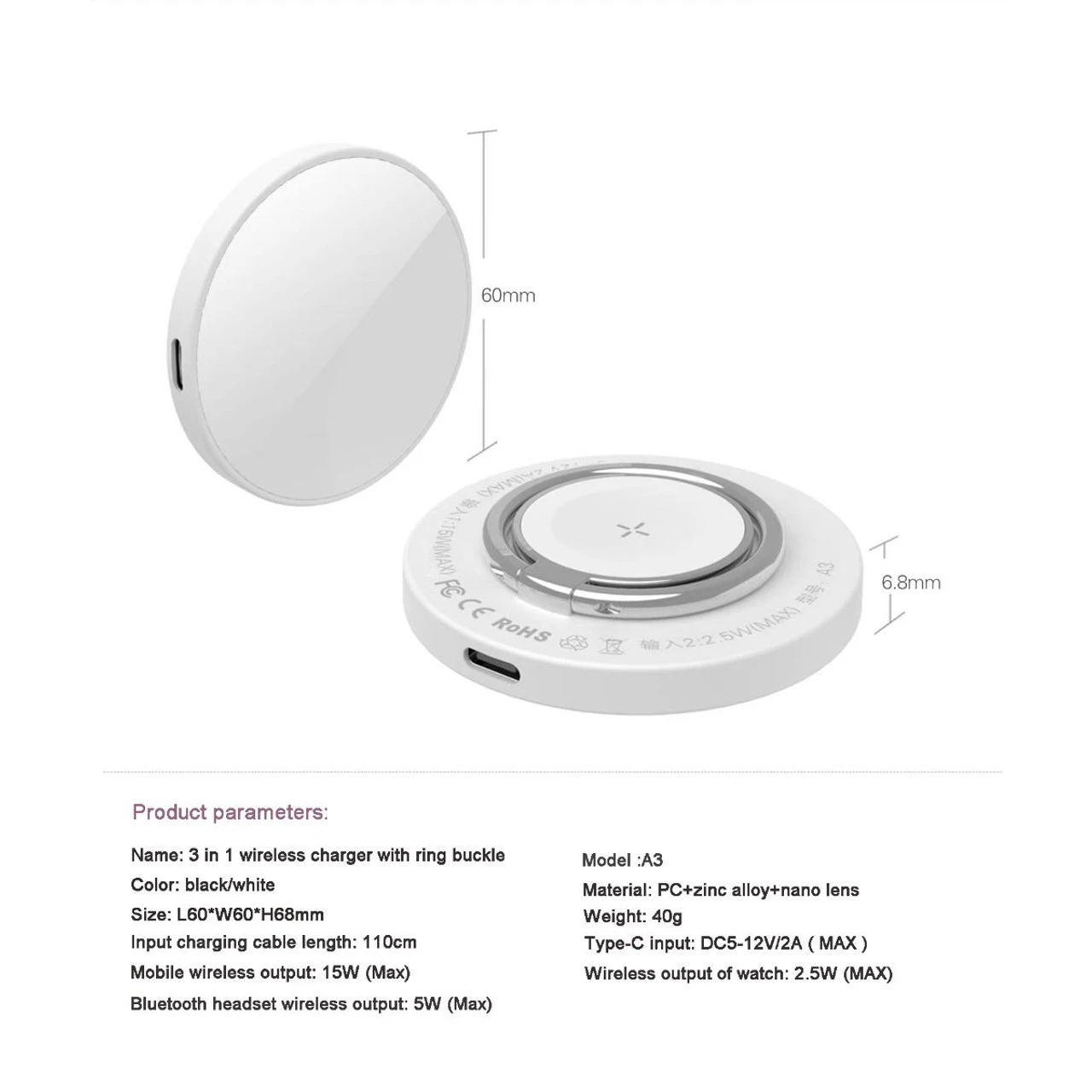 - 1 x 15W Magnetic Wireless Charger for iPhone 12 13 14 w/ Ring Stand