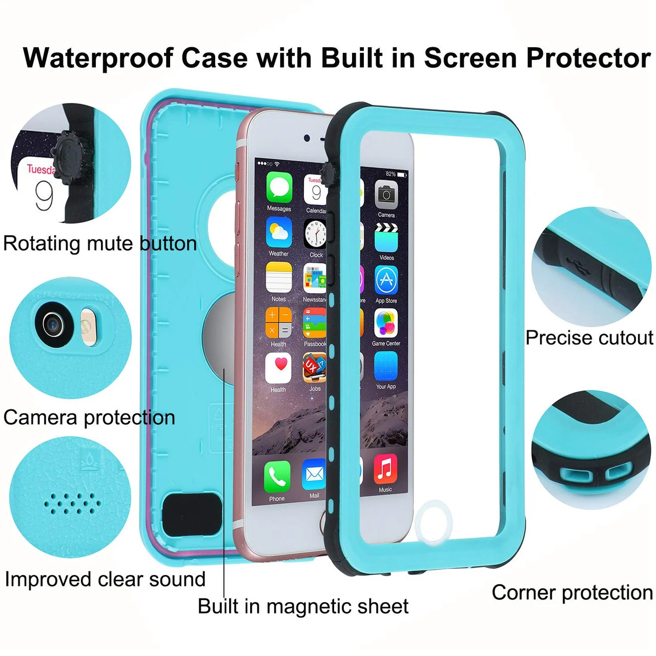 - 1 x Apple iPhone 6 / 6S Waterproof Dirtproof Defender Case – Blue
