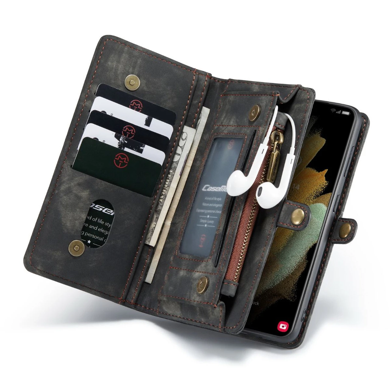 - Multi-Functional Galaxy S21+ Wallet Case: durable PU leather wallet purse include 11 card slots holder + 3 cash pocket + 1 zipper bag. Carry your ID & credit cards & driver license & cash with you all the time and no need carry your purse. Galaxy S21+ case wallet for Men, Women