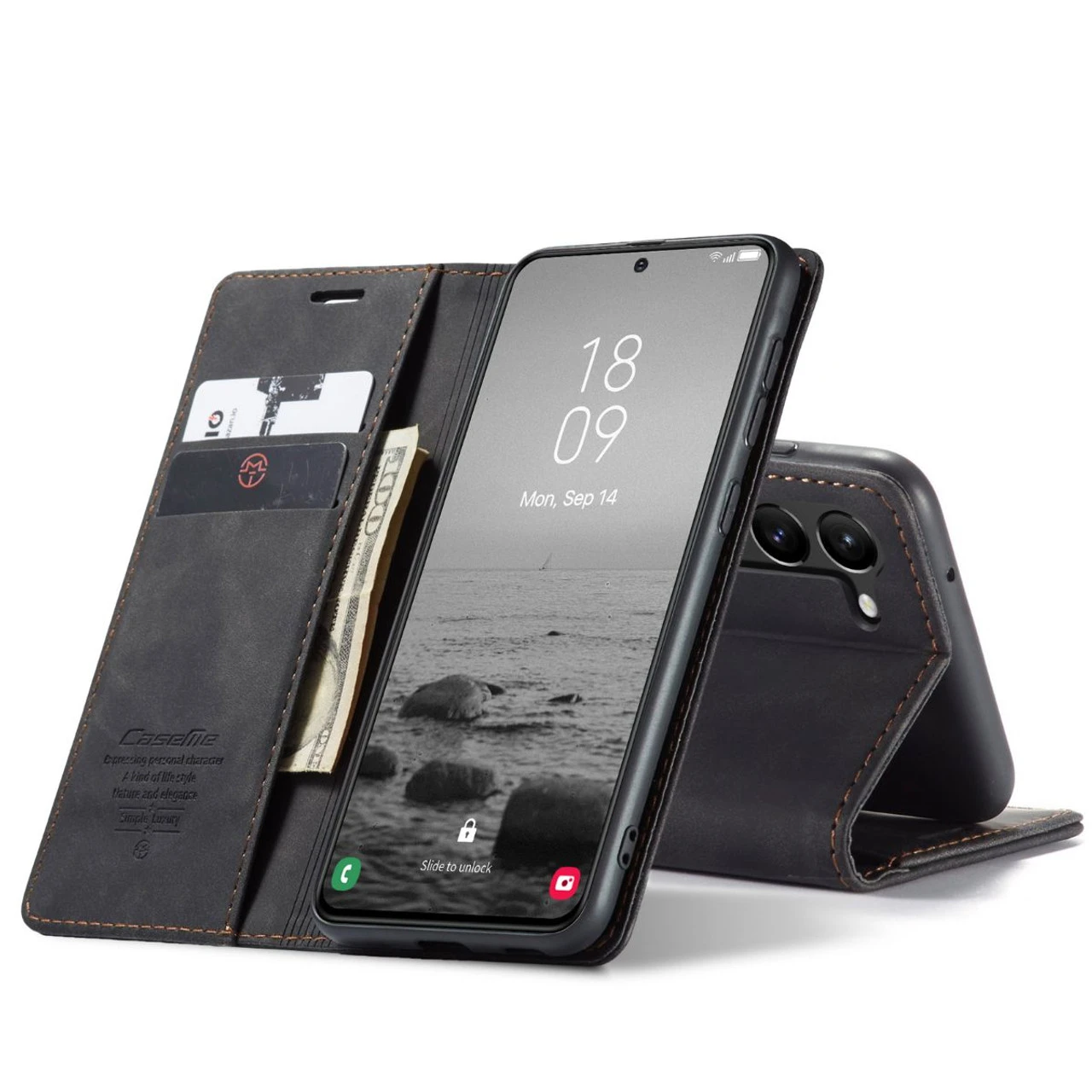 The Black CaseMe Slim Wallet Case For Galaxy S23+ Plus is designed with high-quality materials, this wallet case is designed to safeguard your Galaxy S23+ Plus from scratches, bumps, and everyday wear and tear. The slim profile adds minimal bulk to your phone, while the 2-card slot allows you to conveniently carry your essential cards.