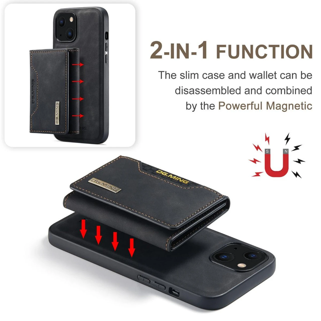 Black DG.Ming M2 Leather Case Removable Wallet Cover For iPhone 13