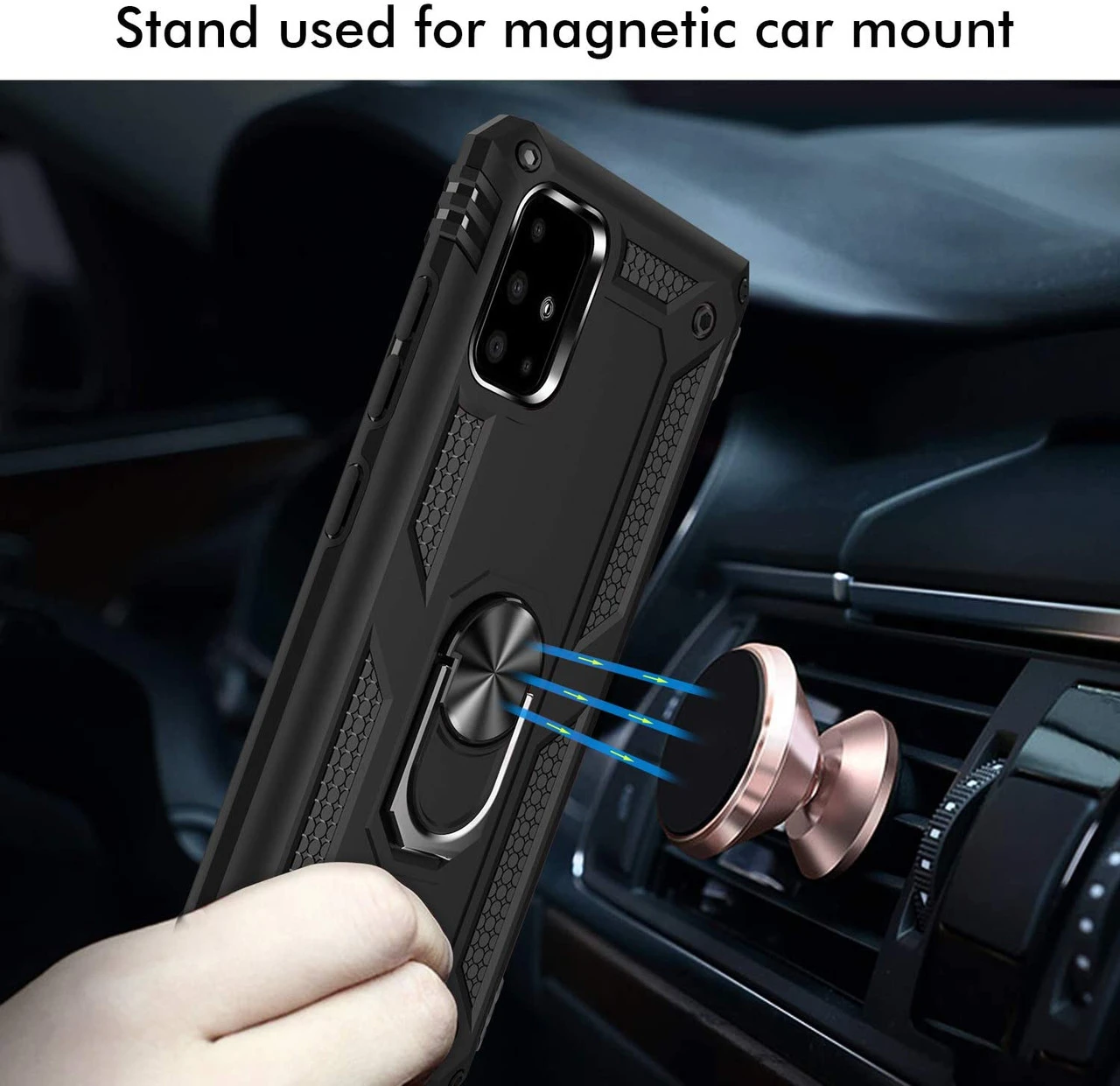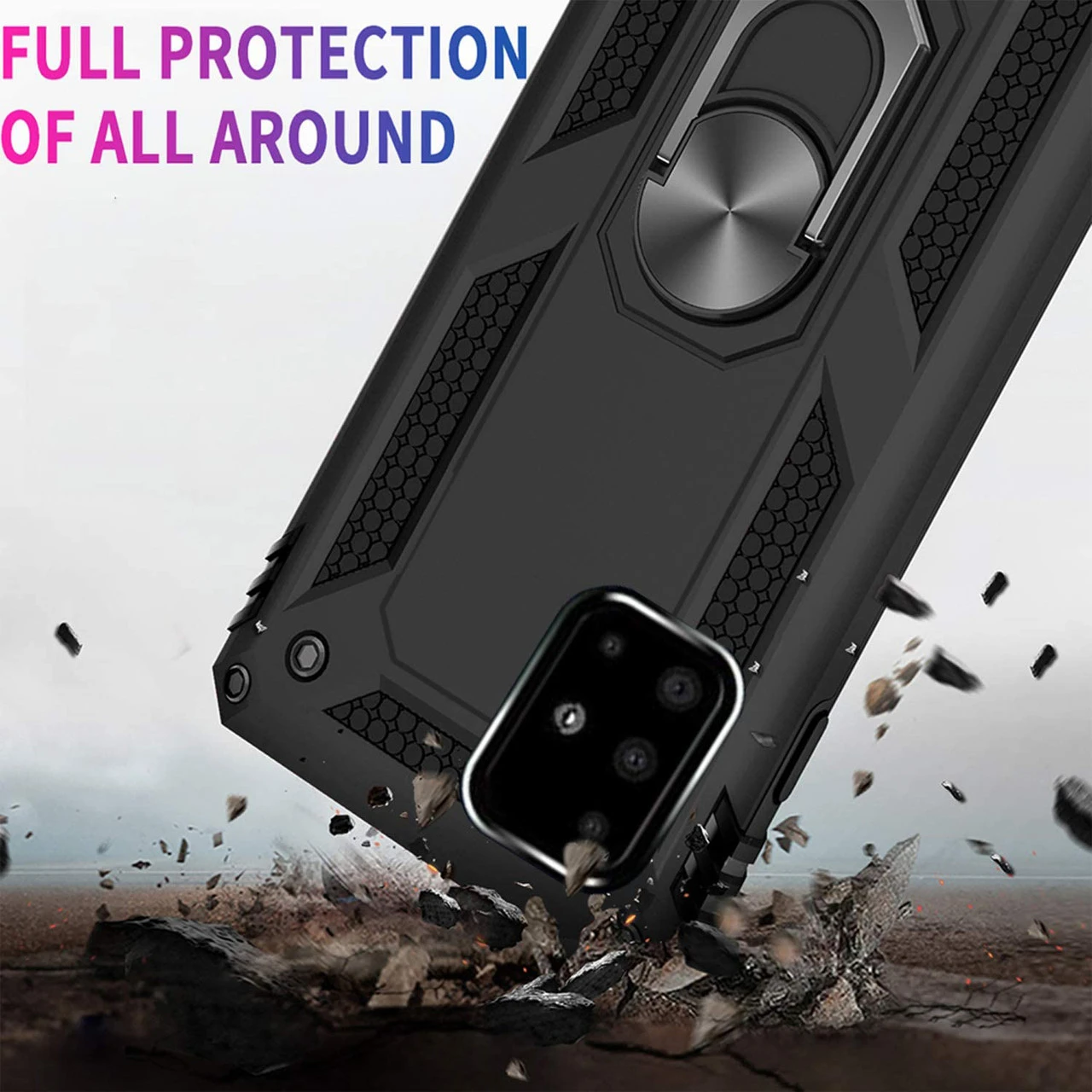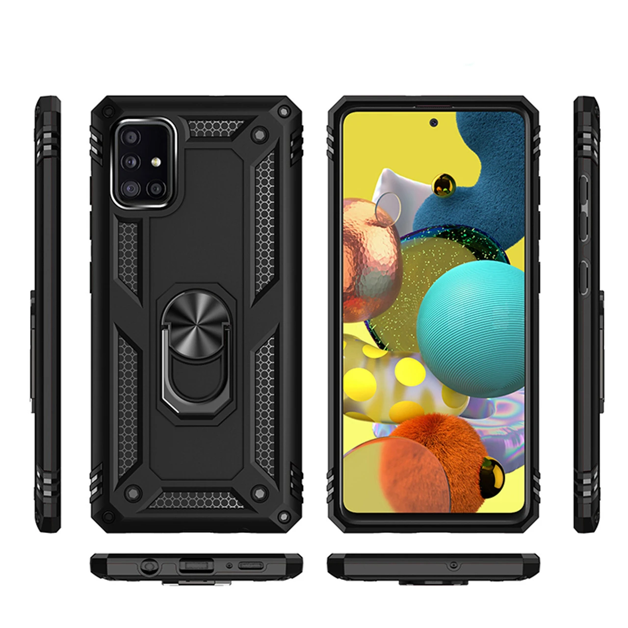 - 1 x Black Galaxy A71 5G Slim Armour 360 Rotating Metal Ring Stand Case