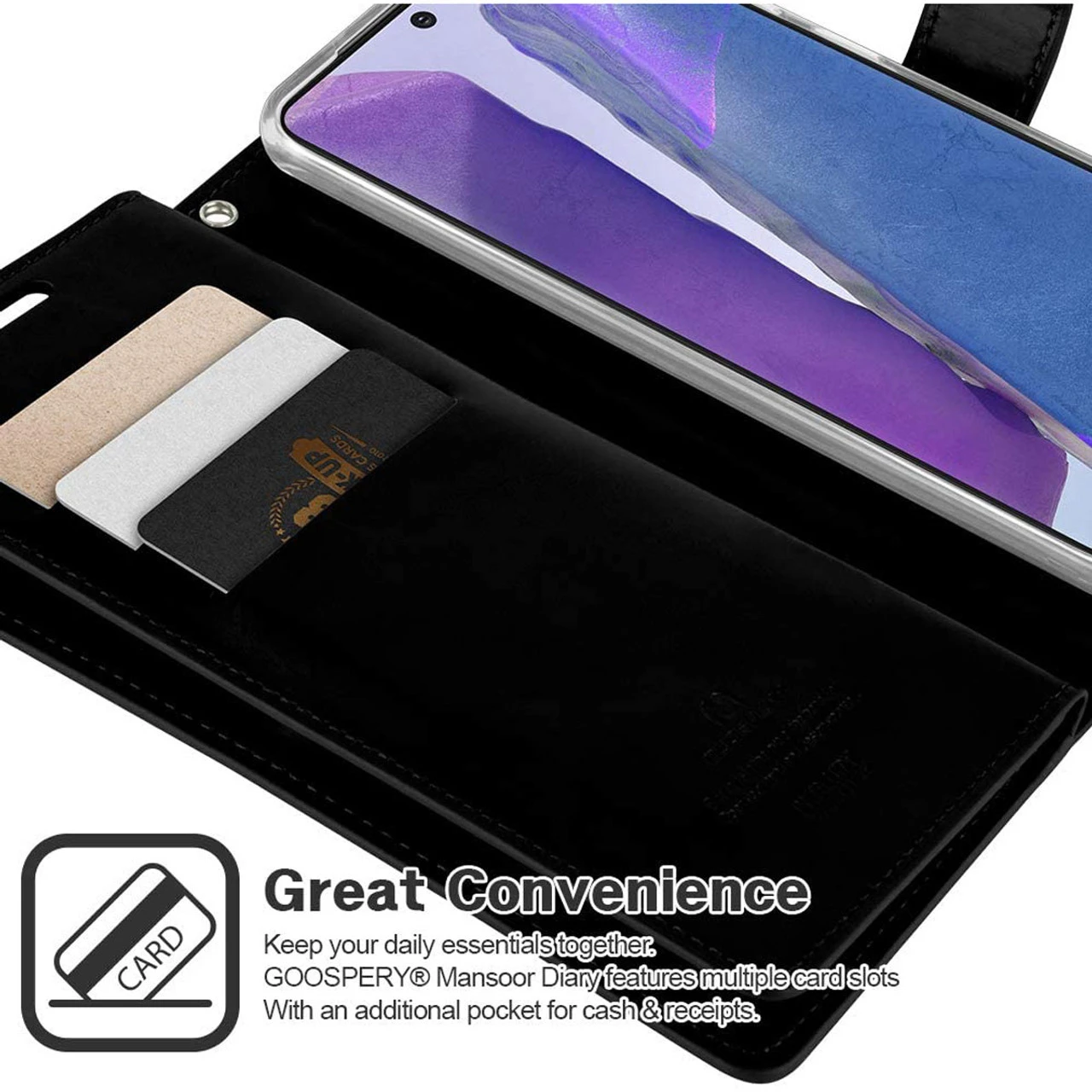 - 1 x Black Galaxy Note 20 Genuine Mercury Mansoor 9 Card Slot Wallet Case