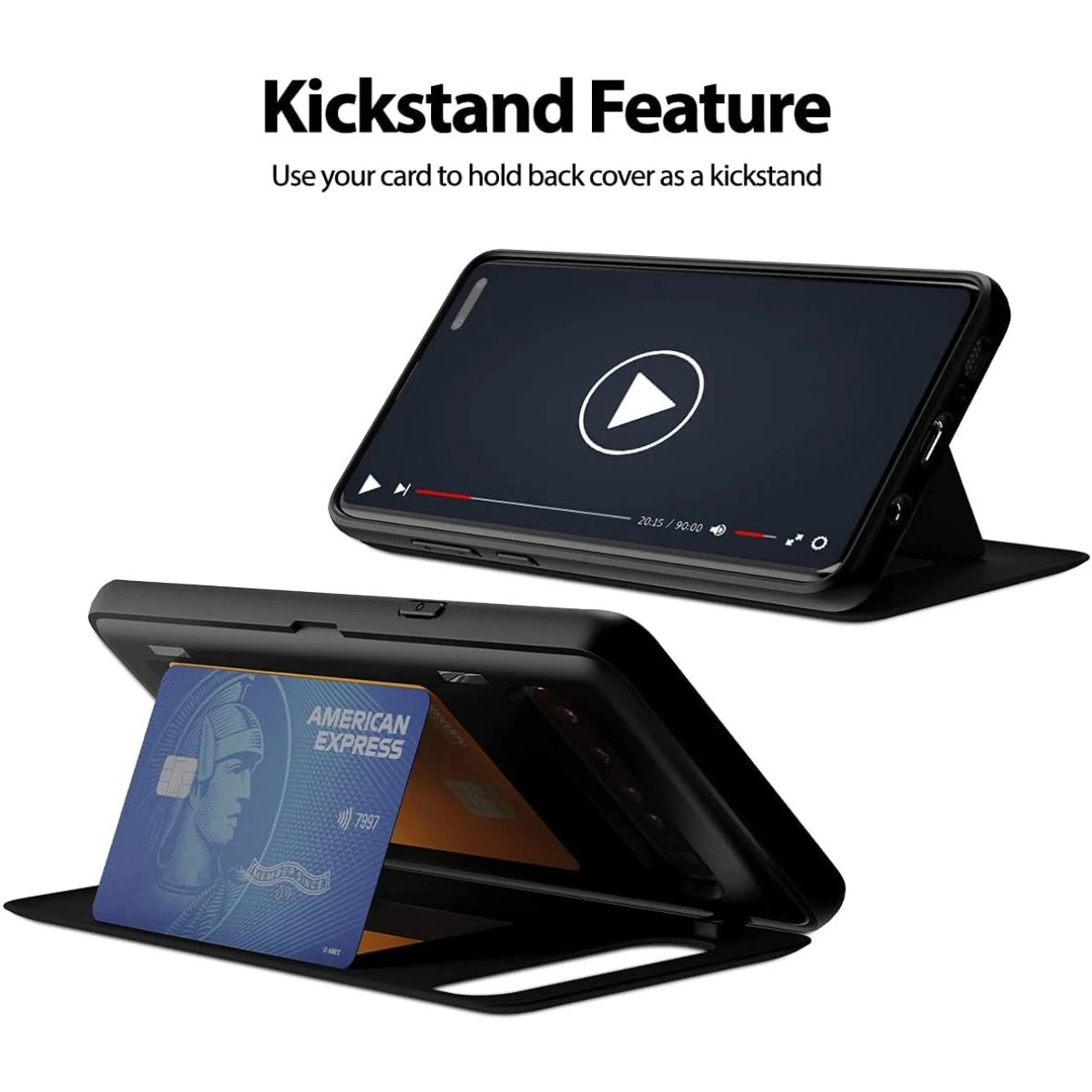 - Magnetic closure makes easier to open and close back cover. If you use your card to hold back cover as a stand, you can enjoy video watching and games.