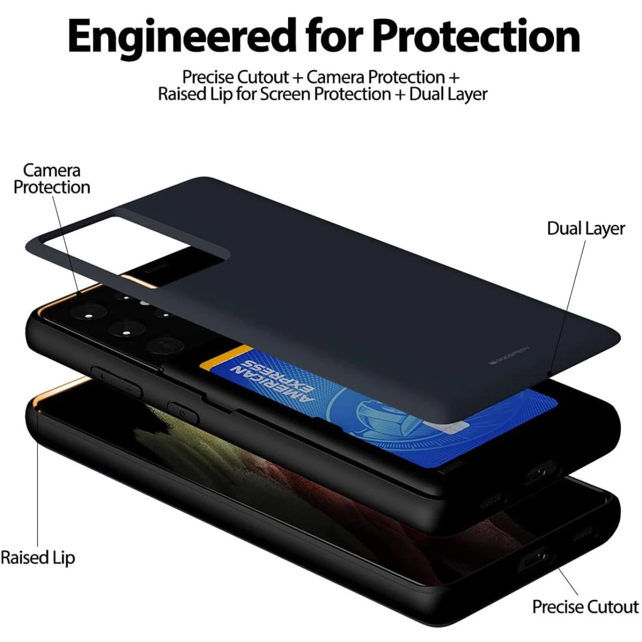 - The pocket friendly lightweight slim Galaxy S21 Ultra Card Holder Case offers precise cutouts and allow easy access to all buttons and ports. Fits snugly over the volume buttons, side button, and curves of the phone.