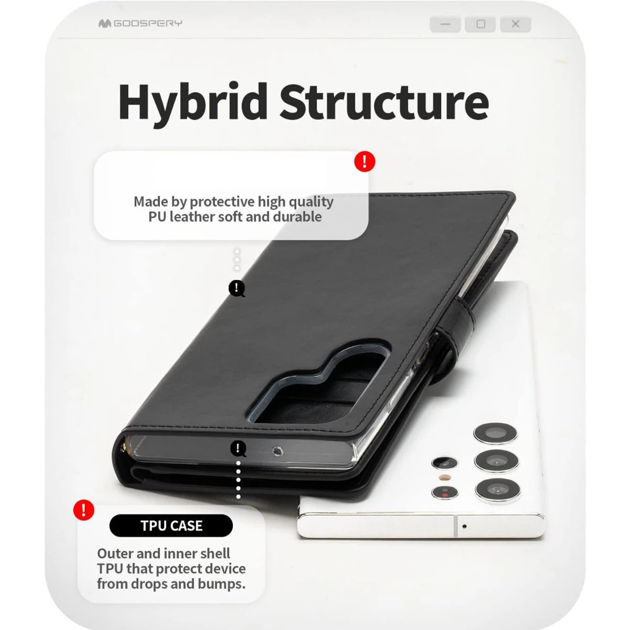 Black Galaxy S23 Ultra Mercury Mansoor Diary Card Holder Wallet