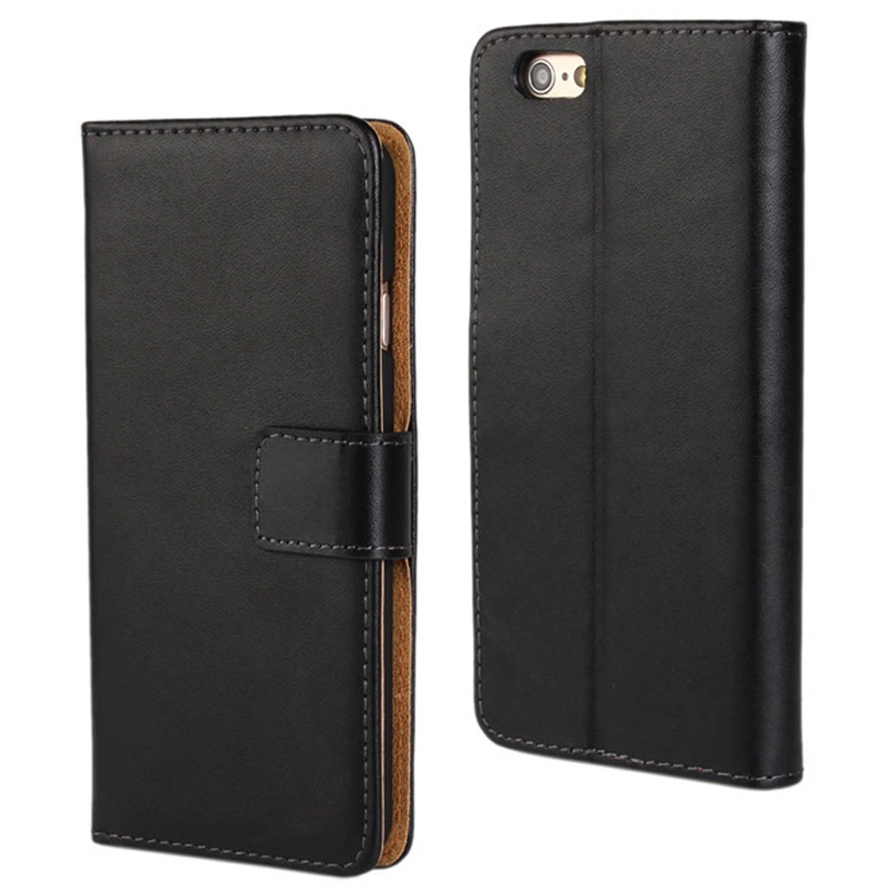 Black Genuine Leather Wallet Case for Apple iPhone 6 / 6S Mobile Phone Cover