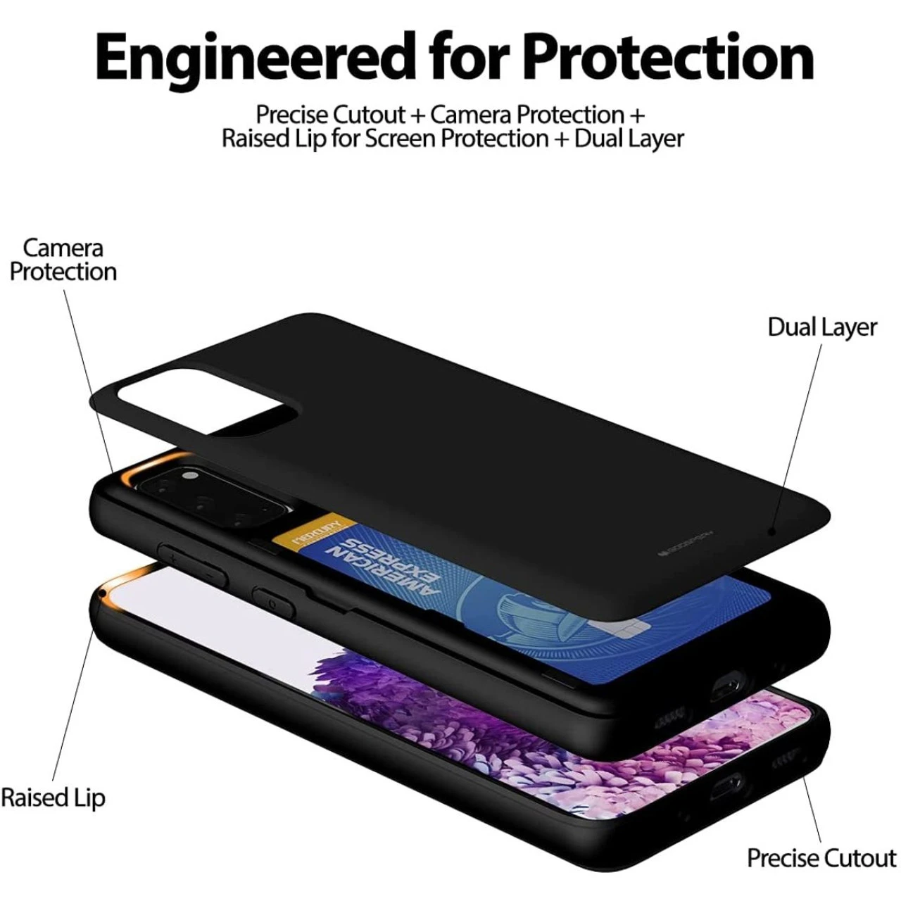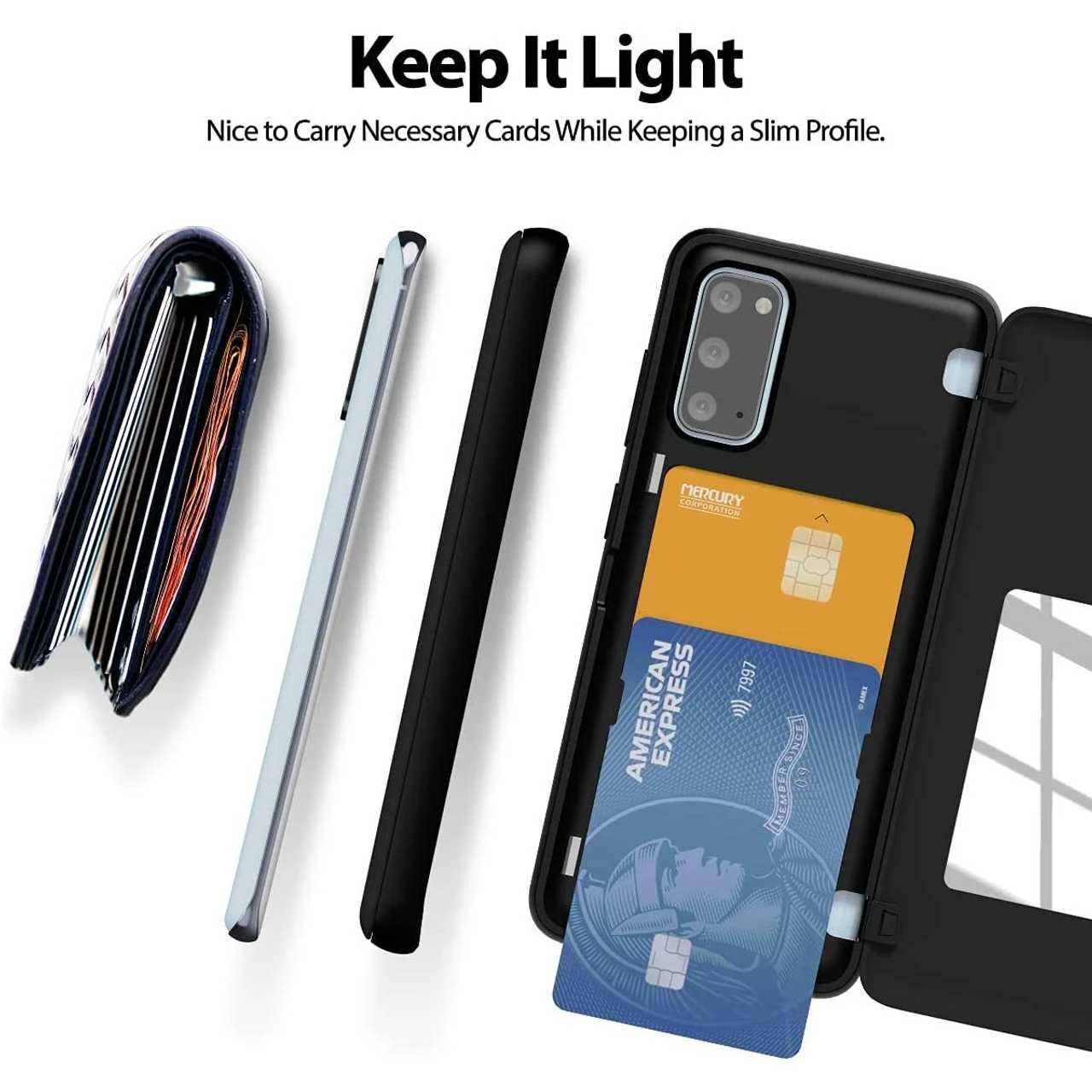 - The pocket friendly lightweight slim Galaxy S20 Card Holder Case offers precise cutouts and allow easy access to all buttons and ports. Fits snugly over the volume buttons, side button, and curves of the phone.