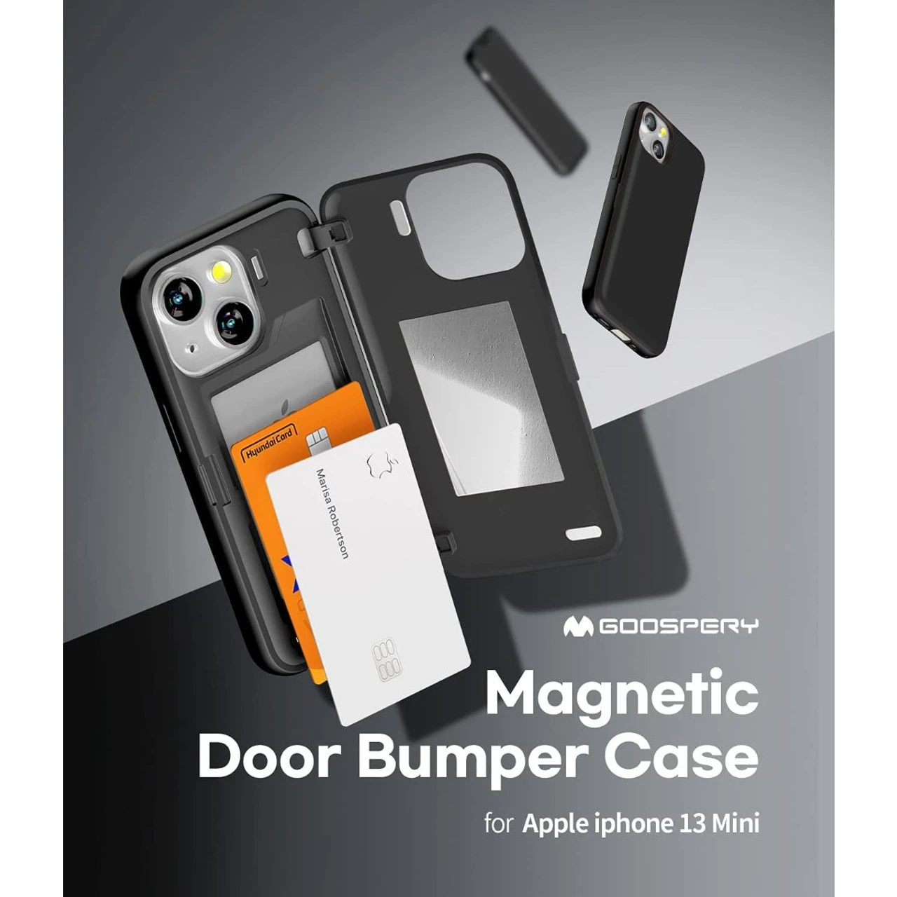 Black Goospery Slim Magnetic Door Credit Card Case For iPhone 13 Mini