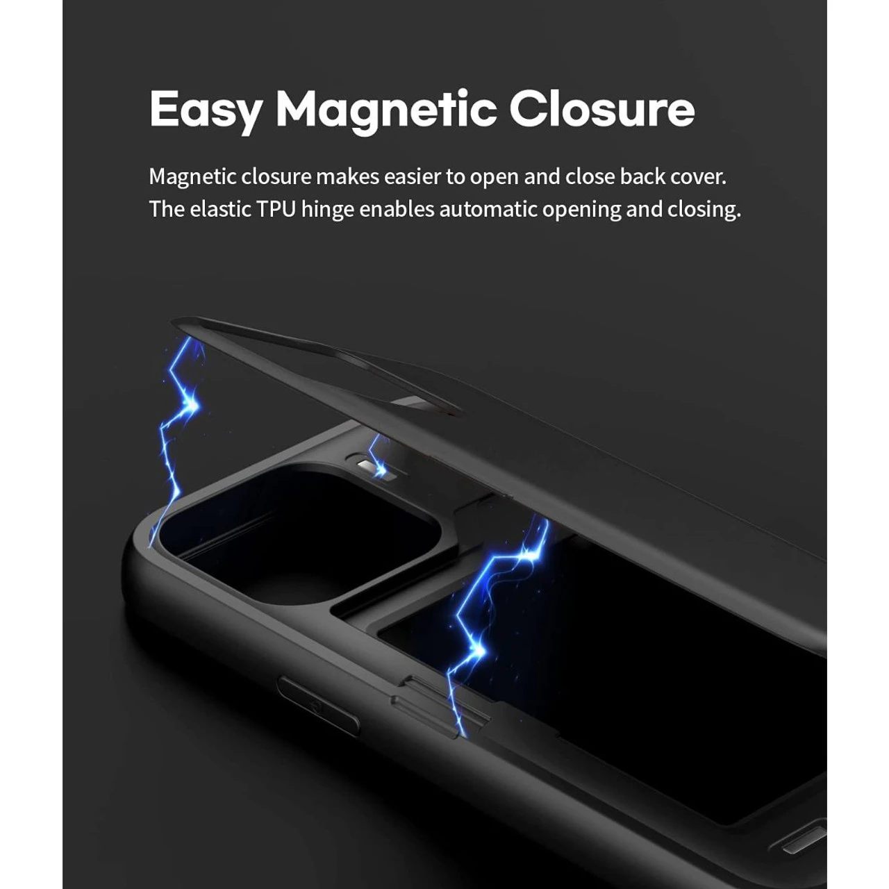 - Magnetic closure makes easier to open and close back cover. If you use your card to hold back cover as a stand, you can enjoy video watching and games.