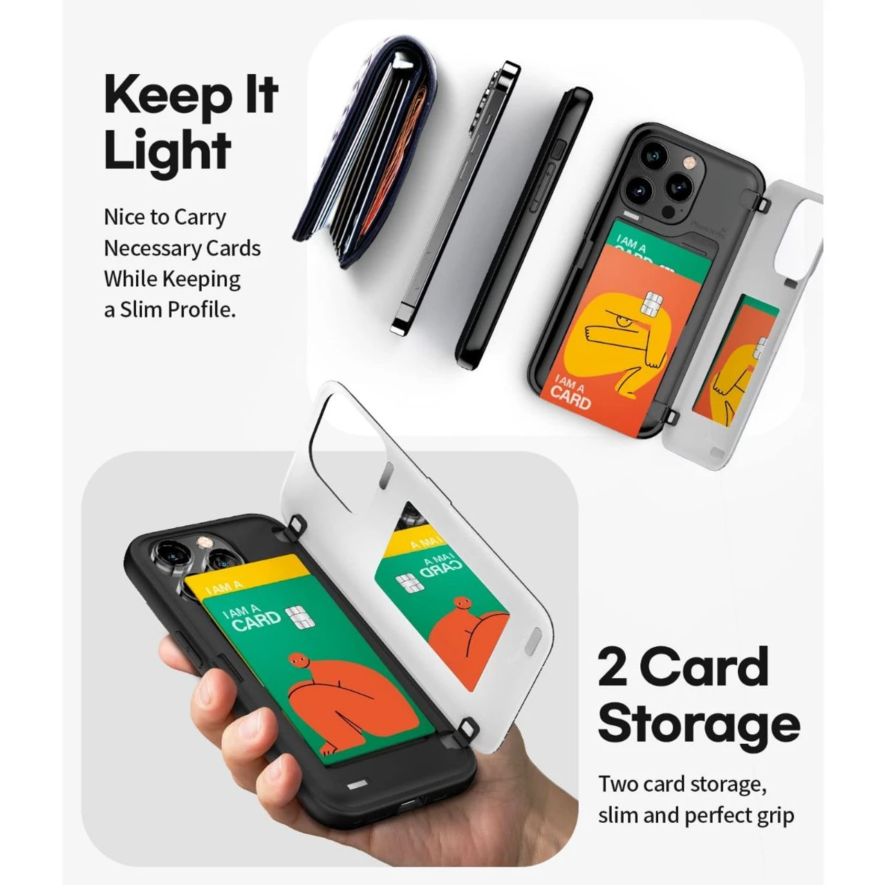 - The pocket friendly lightweight slim iPhone 14 Pro Card Holder Case offers precise cutouts and allow easy access to all buttons and ports. Fits snugly over the volume buttons, side button, and curves of the phone.