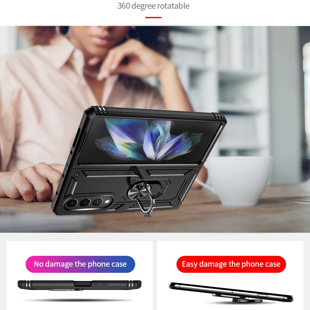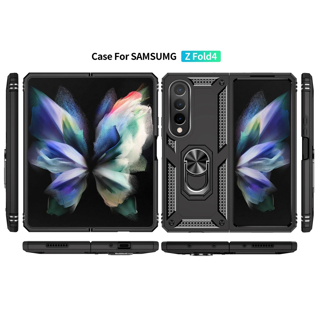 Black Heavy Duty 360 Rotating Metal Ring Stand Case For Galaxy Z Fold4 5G
