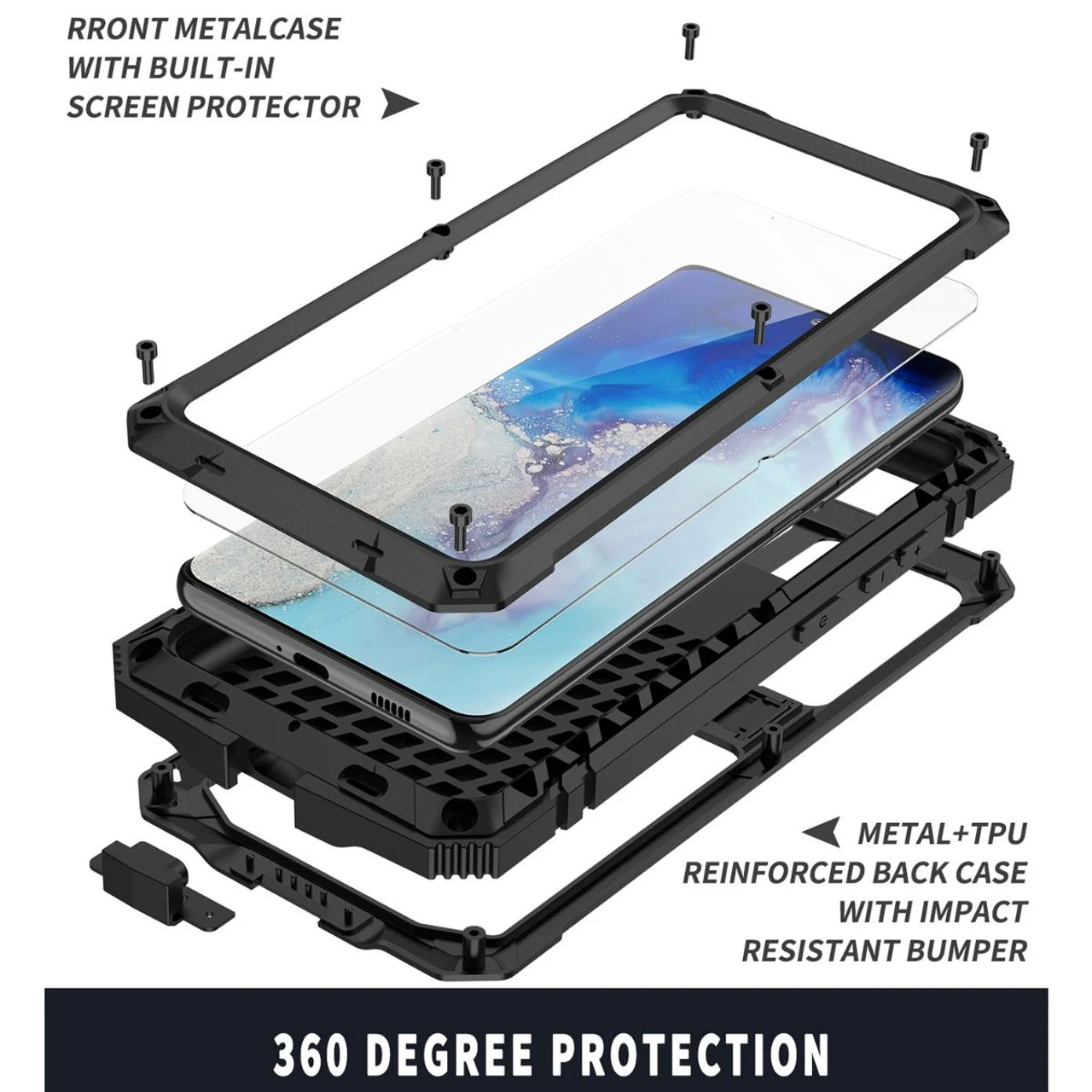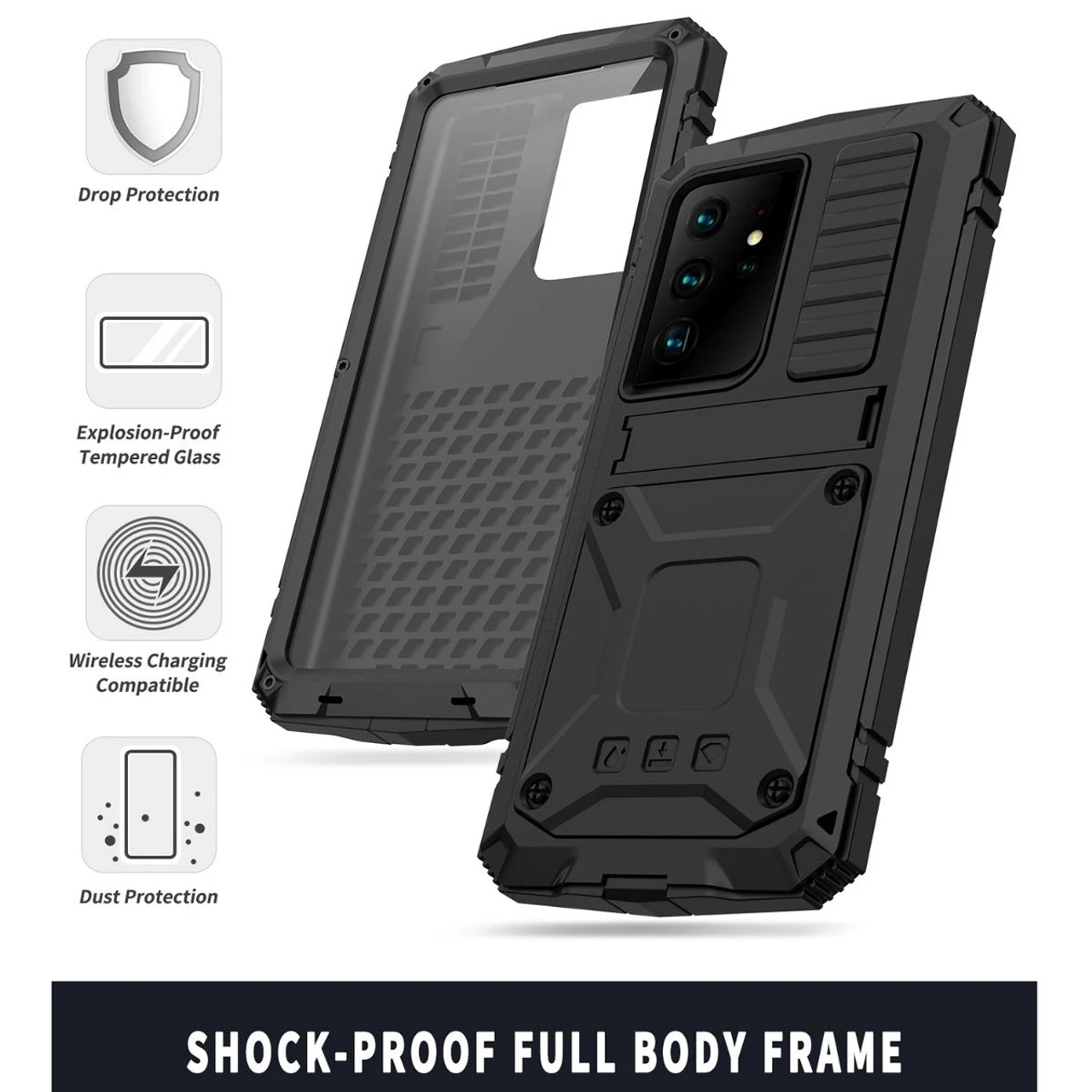 Black Heavy Duty Military Metal Drop Proof Case For Galaxy S21 Ultra