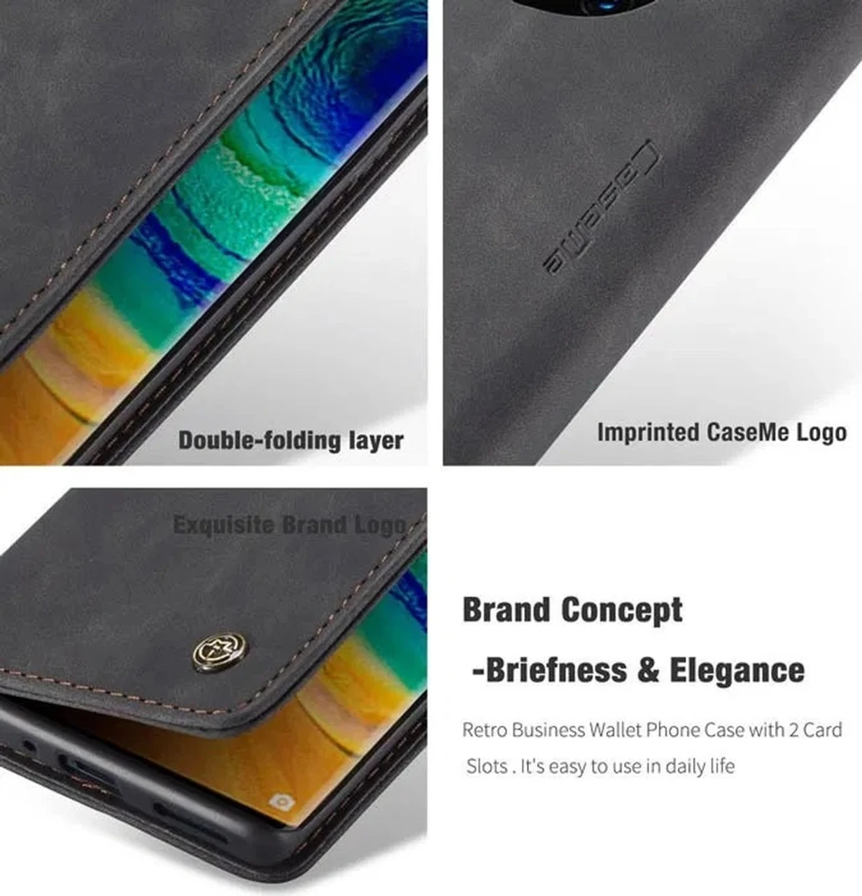 The Huawei Mate 30 Pro CaseMe wallet case is precision made from High Quality Material,Reinforced Stitching makes it even more Durable and Shockproof. They look stylish and feel natural and soft.