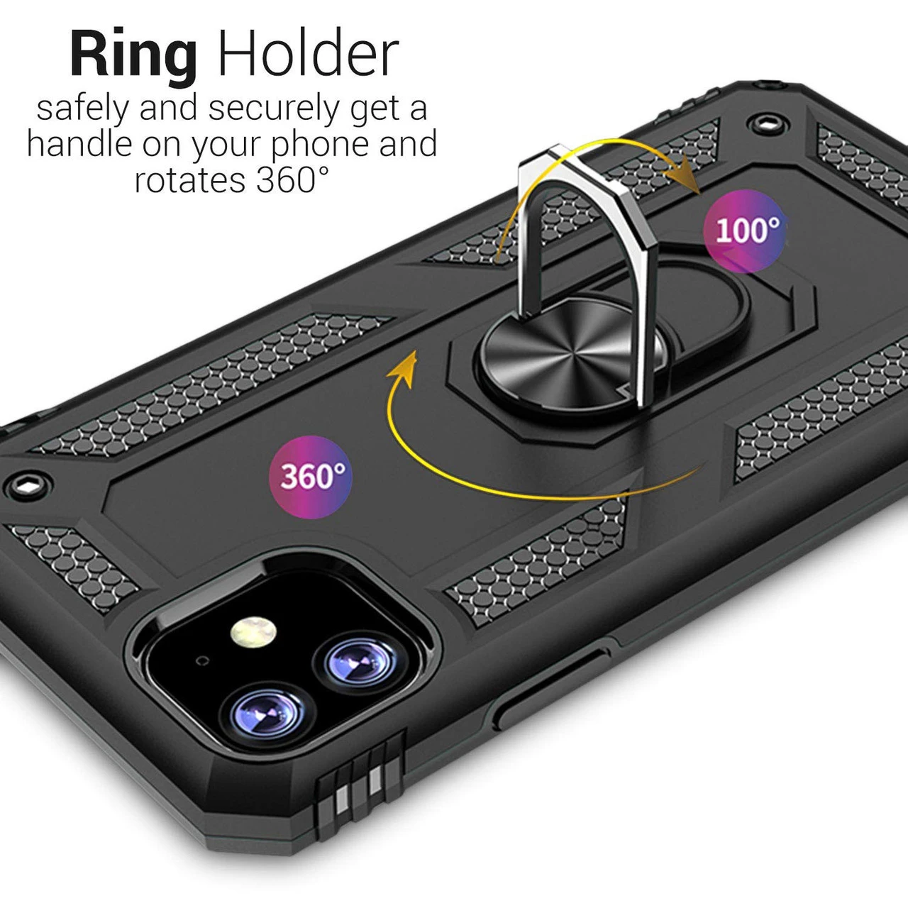 - Ring Kickstand:360° rotate stand allow you to play your New iPhone horizontally or vertically. Provides you with multiple-viewing angles for watching video and movie, let you hands free and enjoy the face-time.