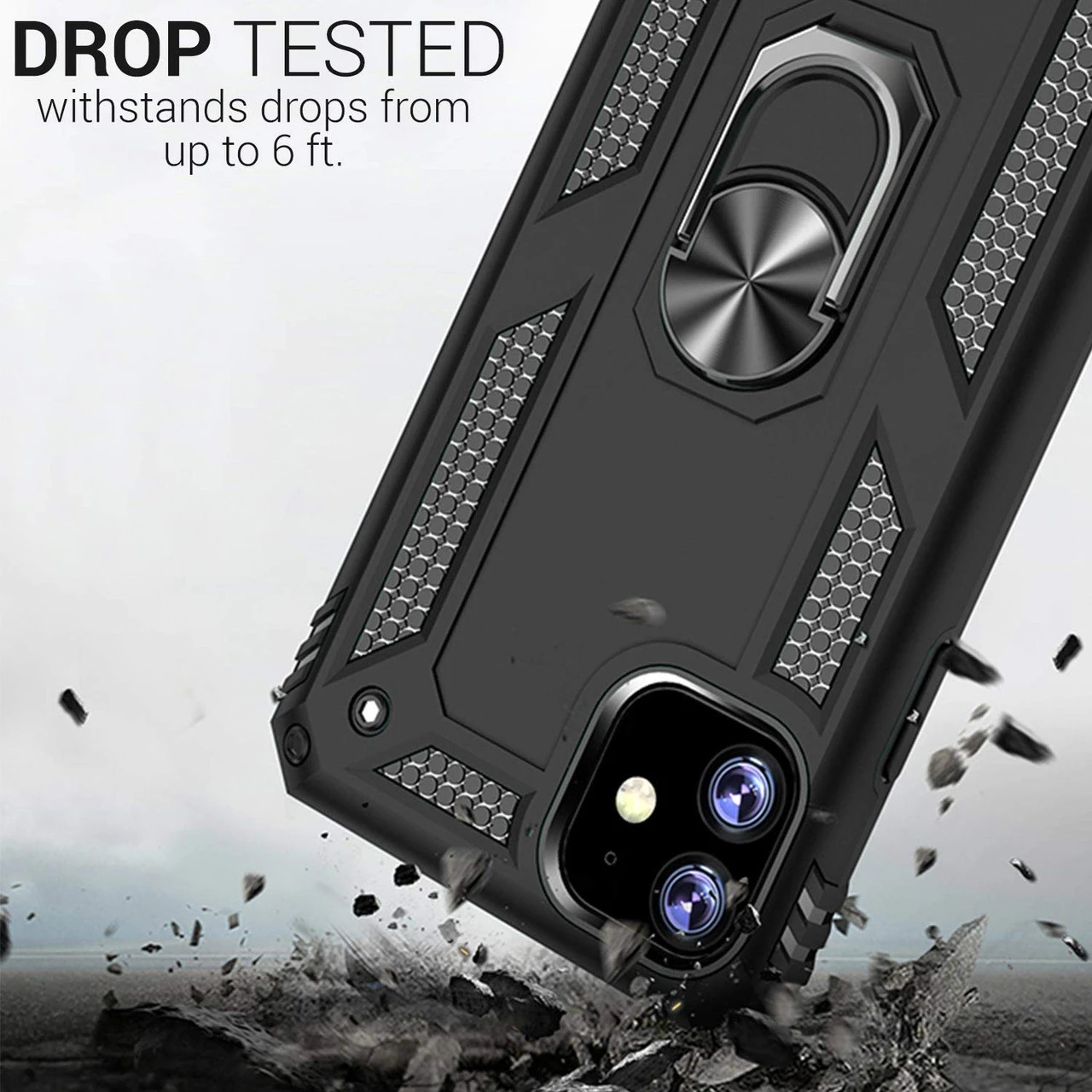 - Shockproof Protection: Dual-layered armor rugged protection with shock-absorbent soft TPU and hard PC for durability. Dirt-resistant, Anti knock, Damage。Durable ,Good Tough Feel, Perfectly fits the shape. Surrounded raised edge of the camera lens and flash, the 4 TPU shockproof corners, are designed for protecting Camera & Screen while laying front-side down.