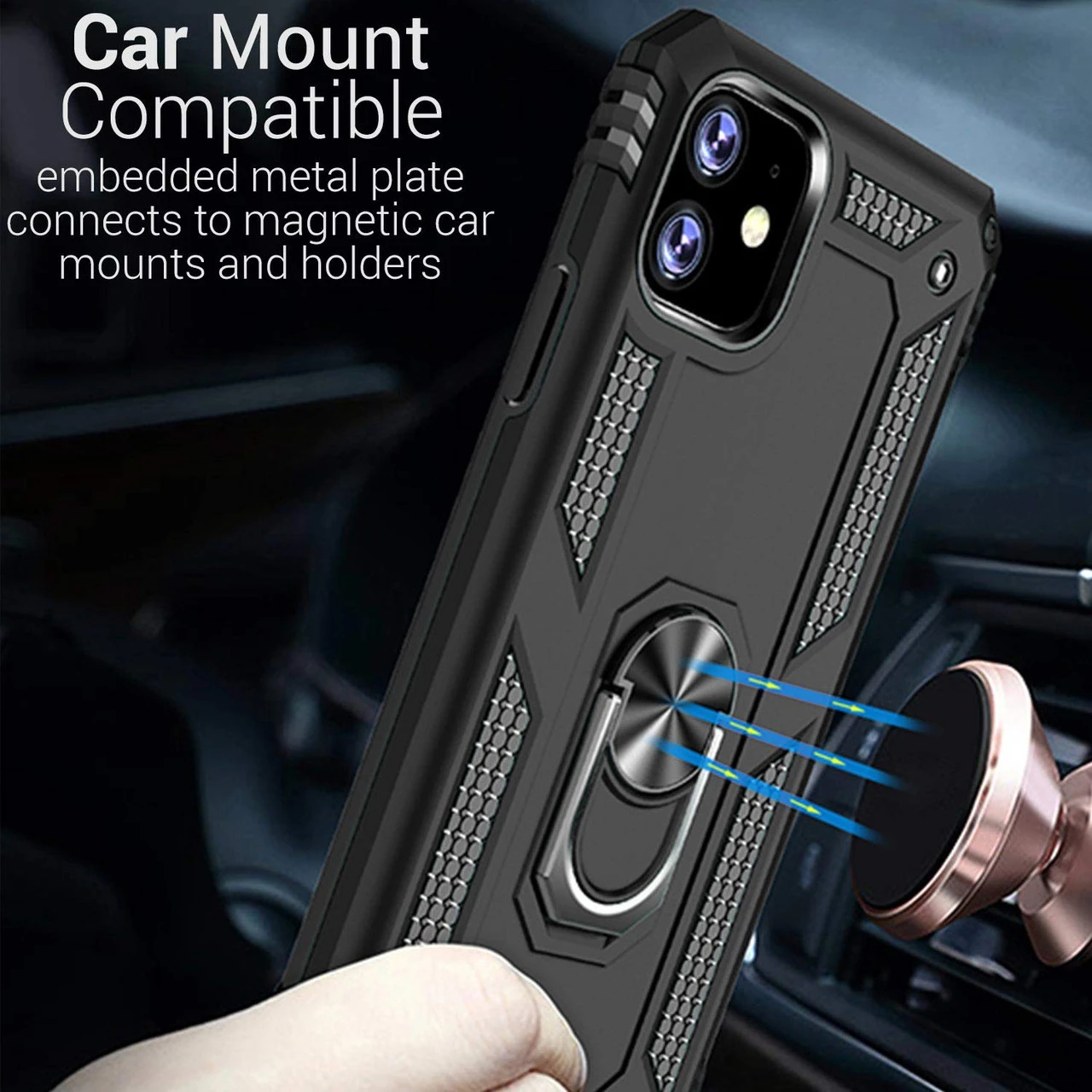- Metal Car Mount: Built-in metal sheet allows you put it on a magnet car mount during driving, have the case tightly adsorbed to the magnetic car mount bracket holder.