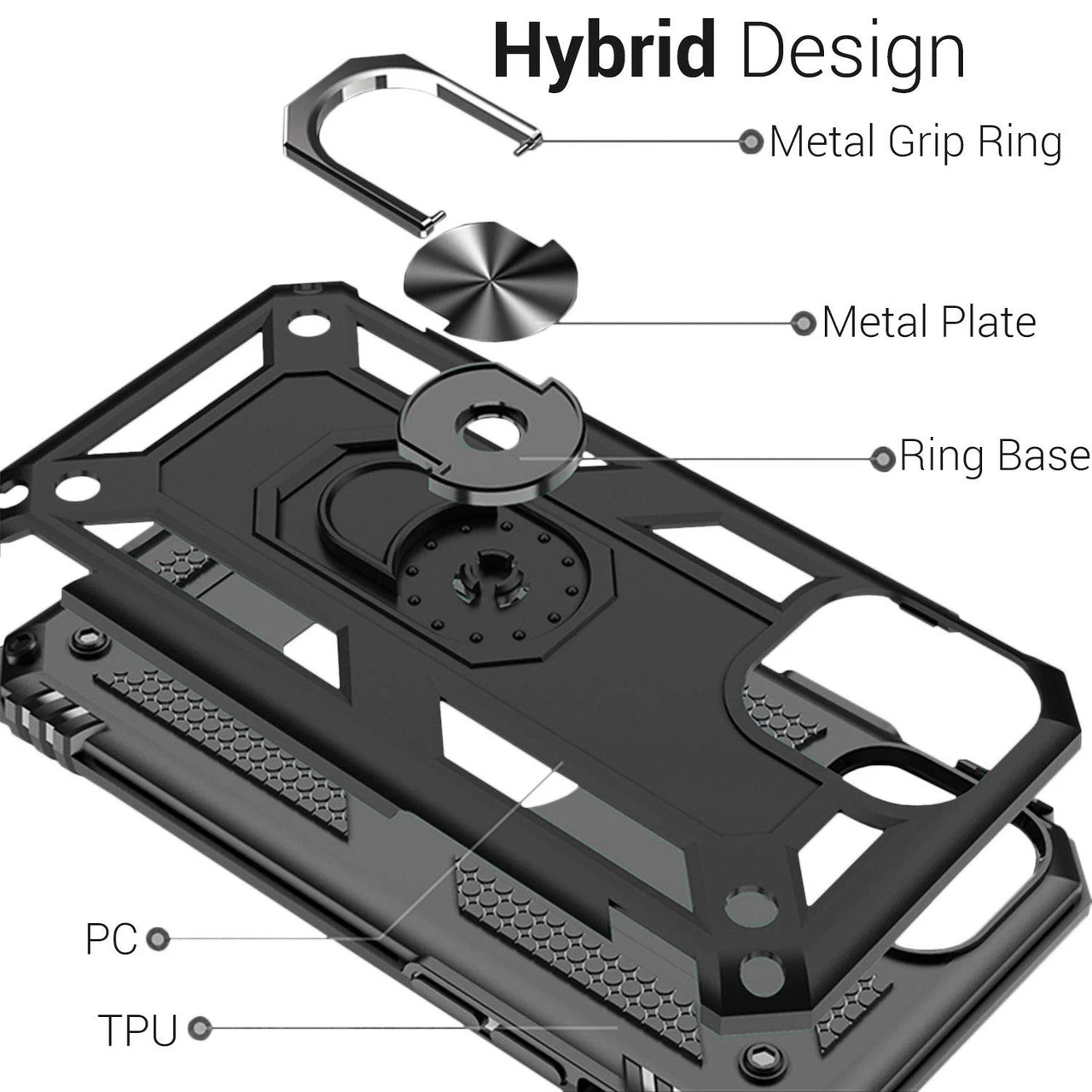 - 1 x Black iPhone 11 Pro Slim Armor 360 Rotating Metal Circle Stand Case
