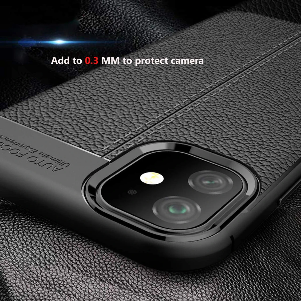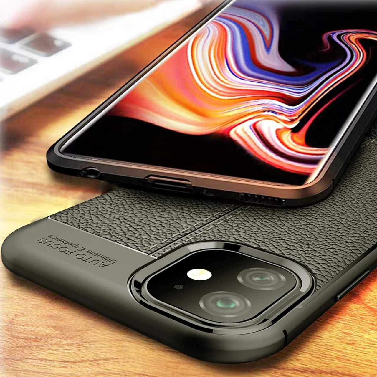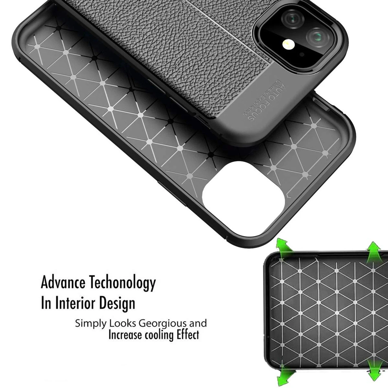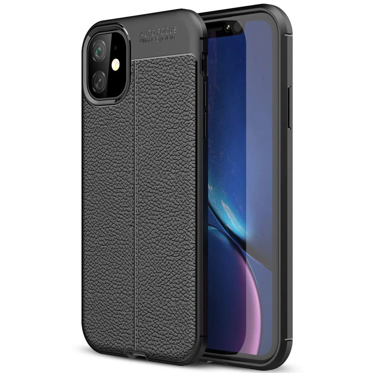 Black iPhone 11 Ultra Slim Shock Absorption Leather Texture Case