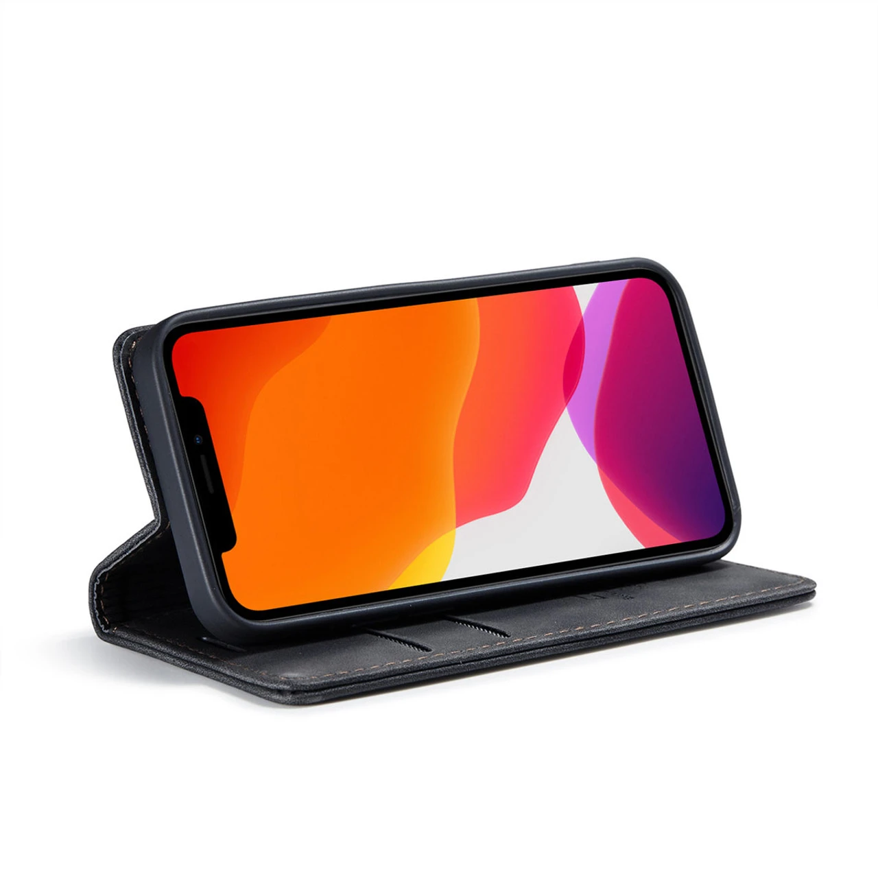 Black iPhone 12 Mini Premium CaseMe Thin Magnetic Wallet Case Â