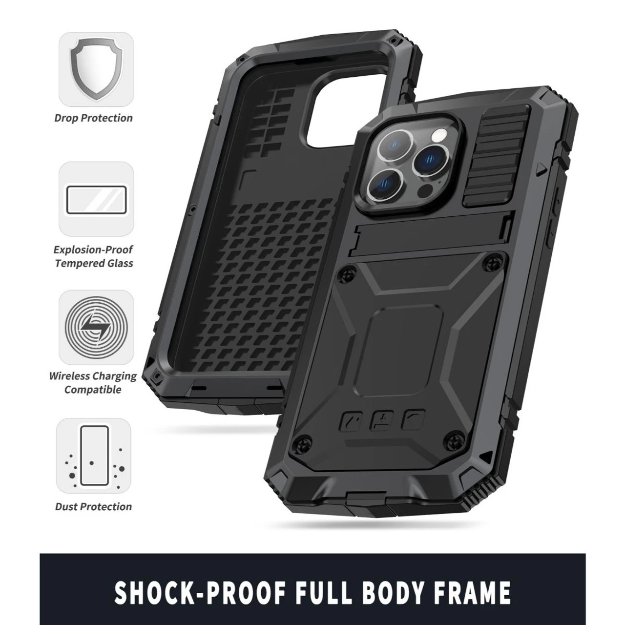 - Â Â Â 1 x Black iPhone 14 Pro Extreme Military Grade Metal Defender Case
