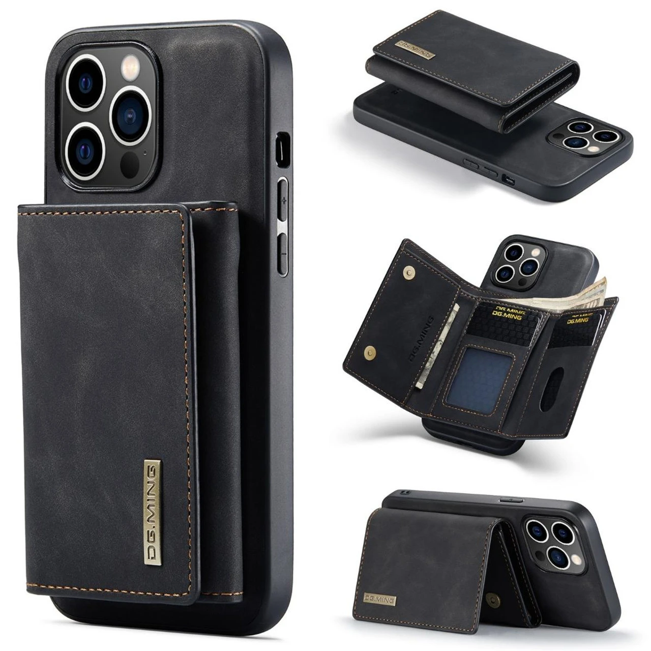 Black iPhone 15 Pro Max DG.Ming M2 Leather Case Removable Wallet Cover