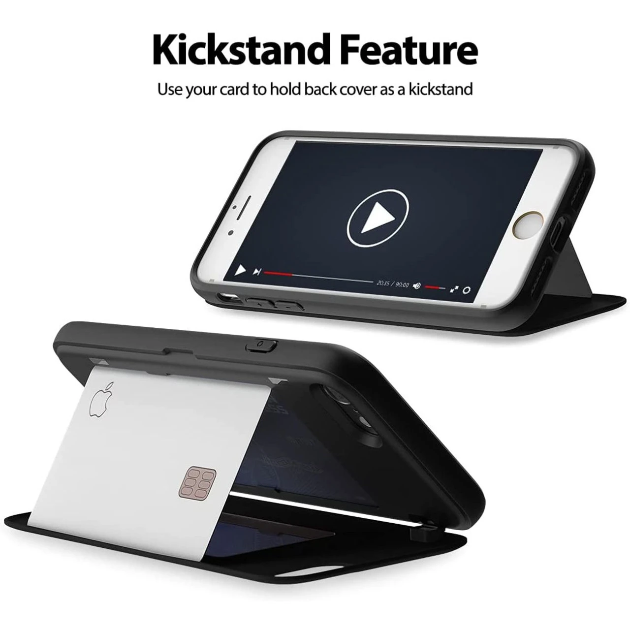 - The pocket friendly lightweight slim iPhone 7 Plus / 8 Plus Card Holder Case offers precise cutouts and allow easy access to all buttons and ports. Fits snugly over the volume buttons, side button, and curves of the phone.