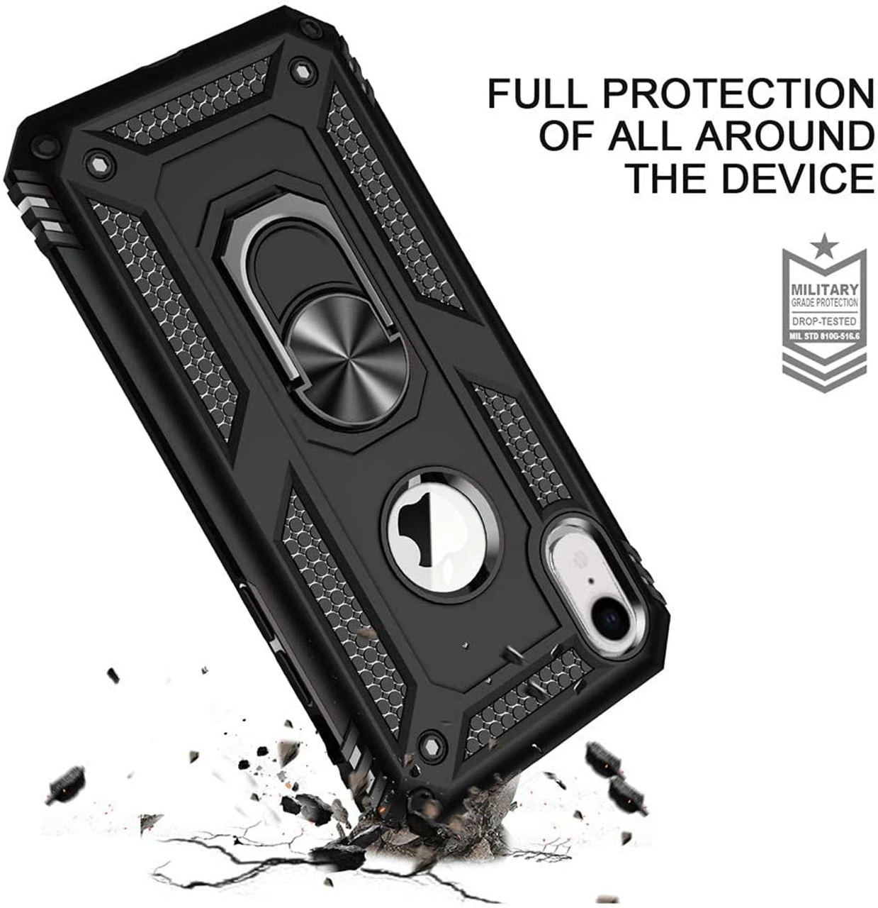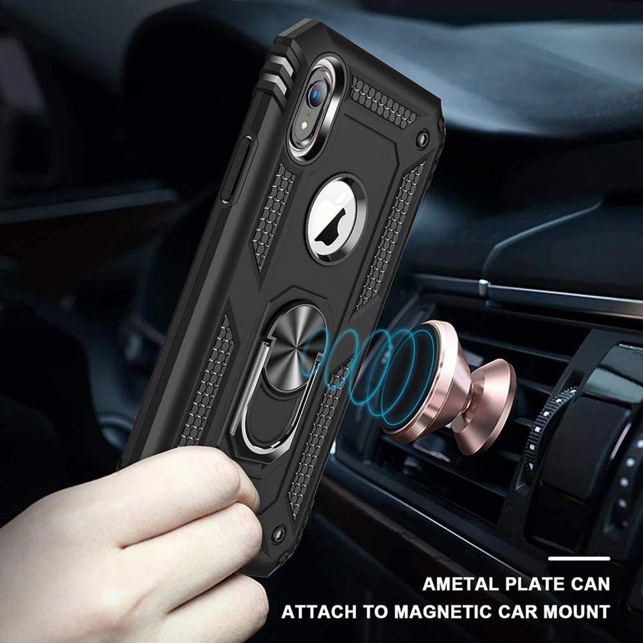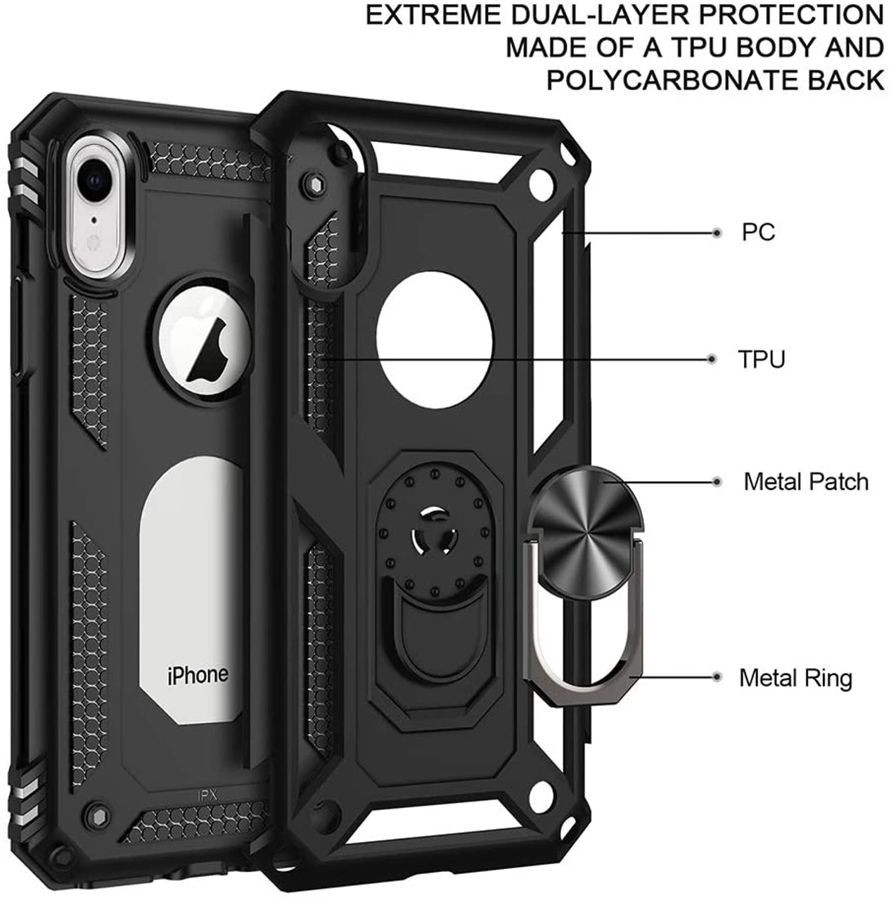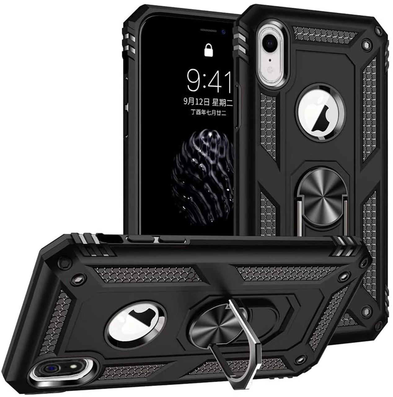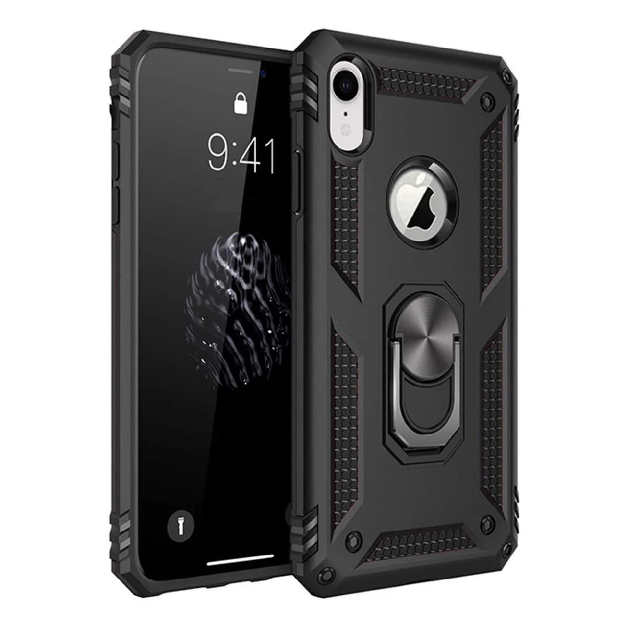 - 1 x Black iPhone XR Shock Proof 360 Rotating Metal Ring Stand Case