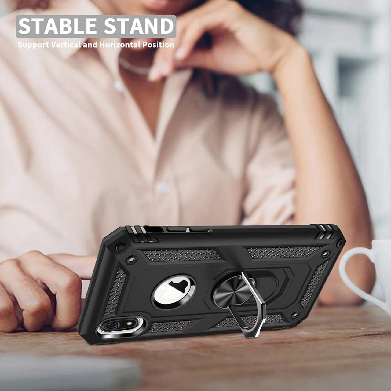 360 Degree Rotating Hidden Built-in ring Rotatable Kickstand provides more angles for watching a video, conferences, and class presentations. More convenient and hands-free. No need to buy finger ring holder anymore!