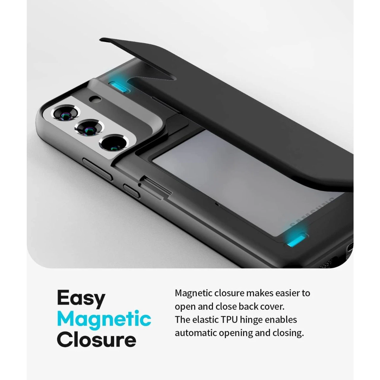 - Magnetic closure makes easier to open and close back cover. If you use your card to hold back cover as a stand, you can enjoy video watching and games.