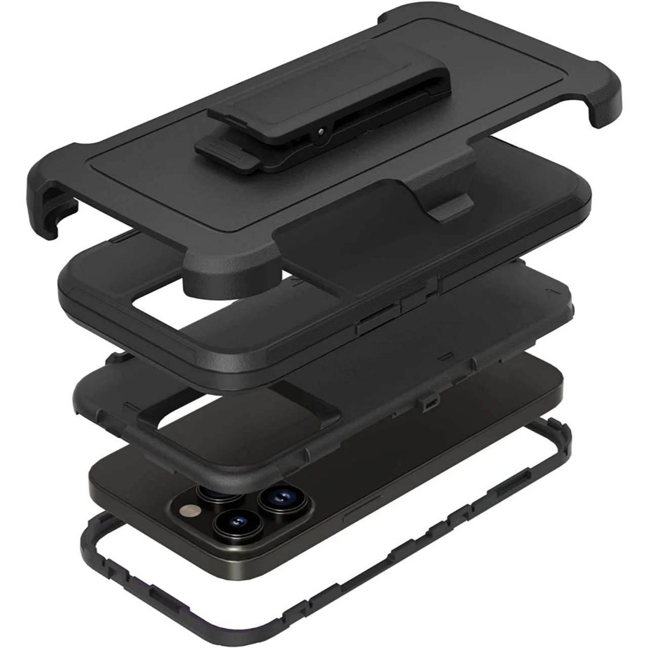 Black Military Shock Proof Defender Holster Case For iPhone 14 Pro Max