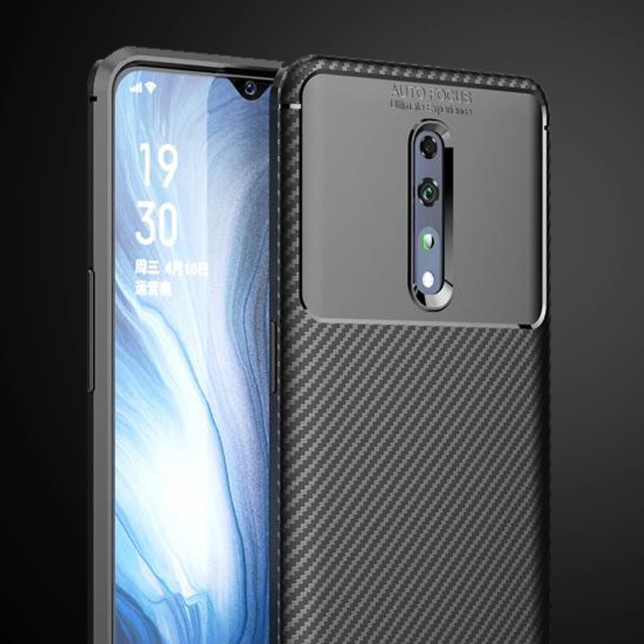 Black Oppo Reno Z Slim Armor Shock Proof Carbon Fibre Case
