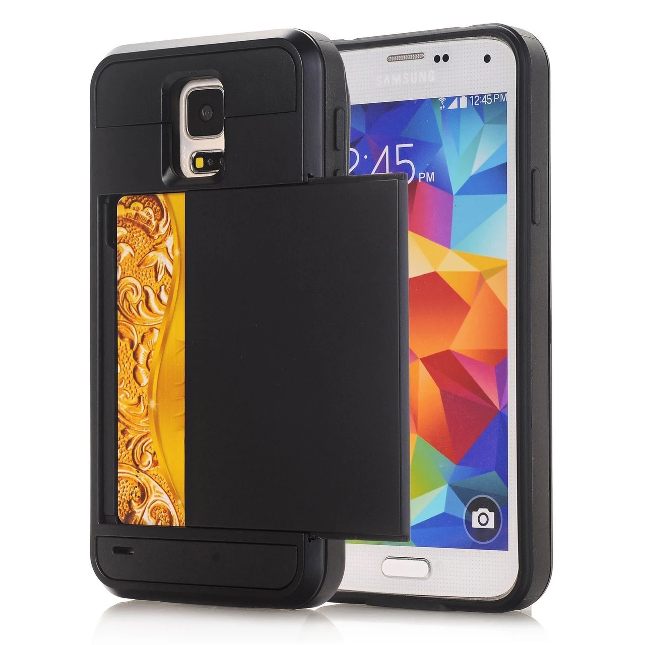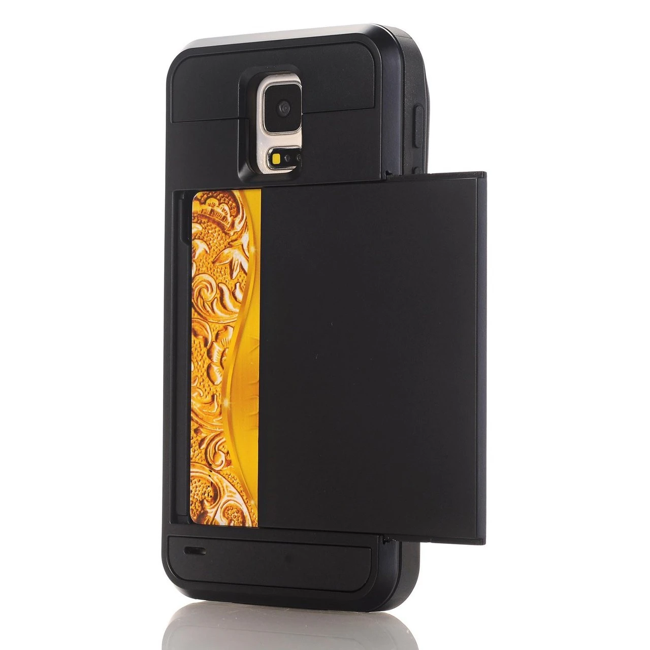 - Black Rubber Bumper Slide Armor Card Holder Case For Samsung Galaxy S5