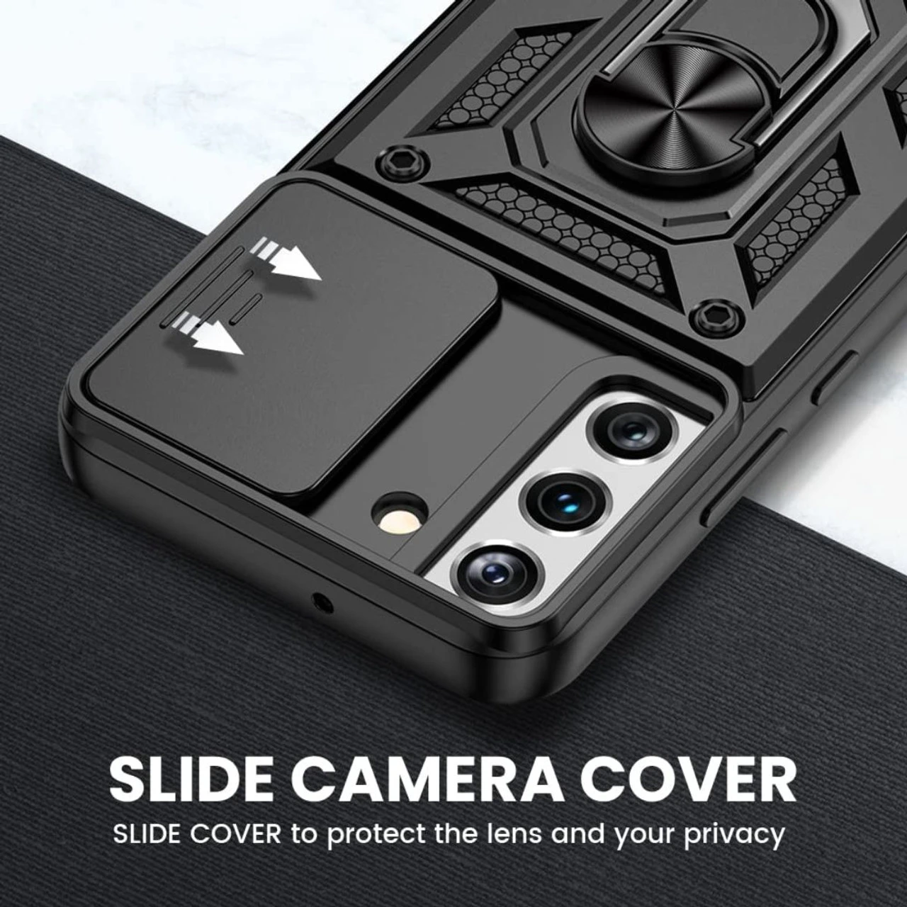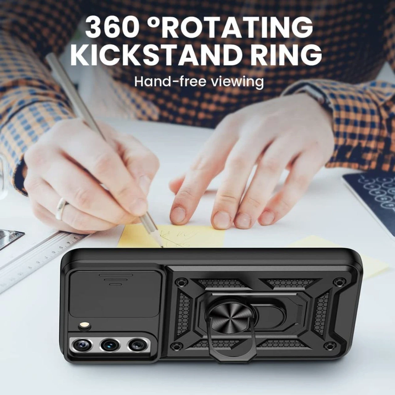 - Â Â Â 1 x Black Samsung Galaxy S21 FE Slim Armour 360 Degree Ring Camera Guard Case