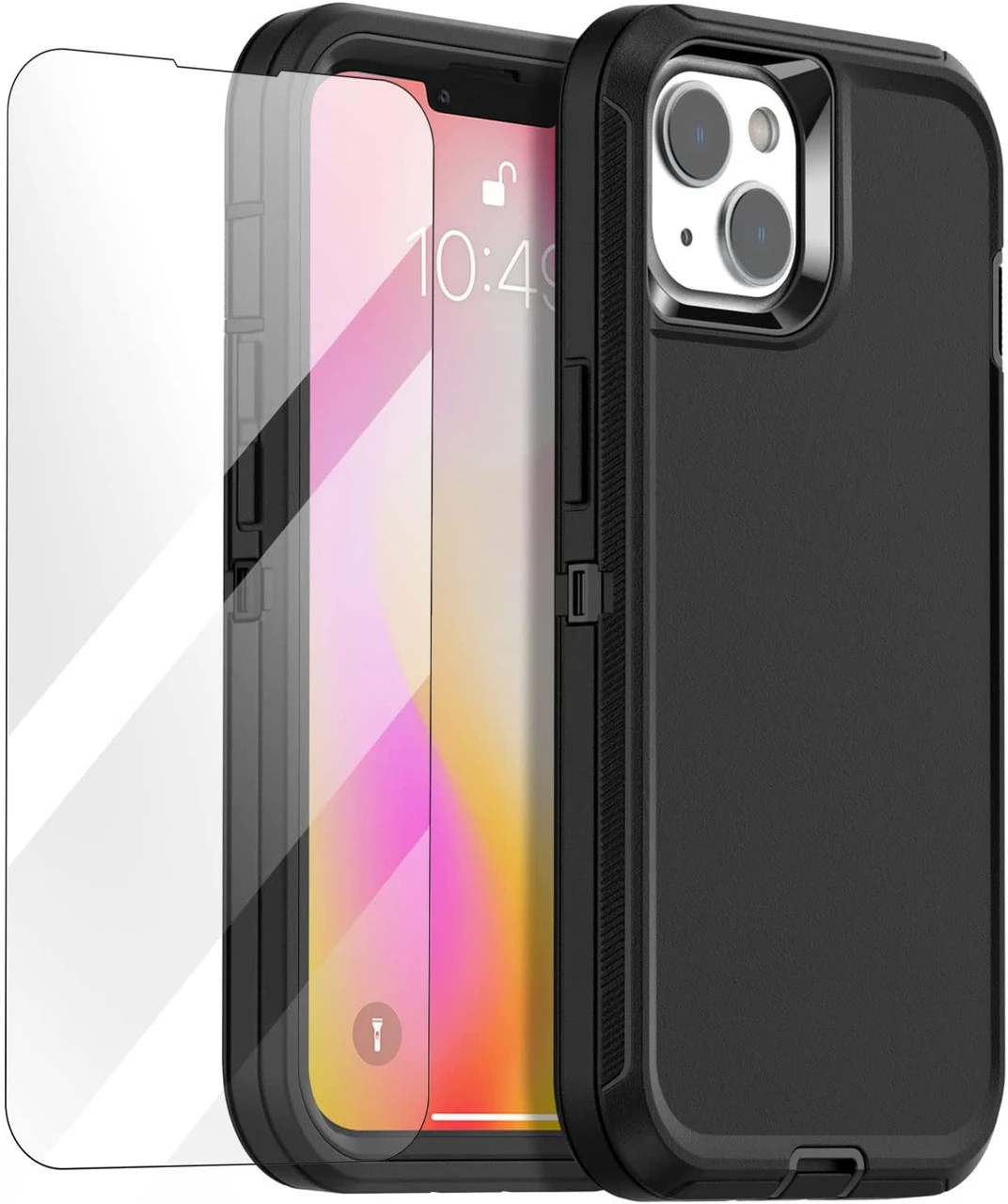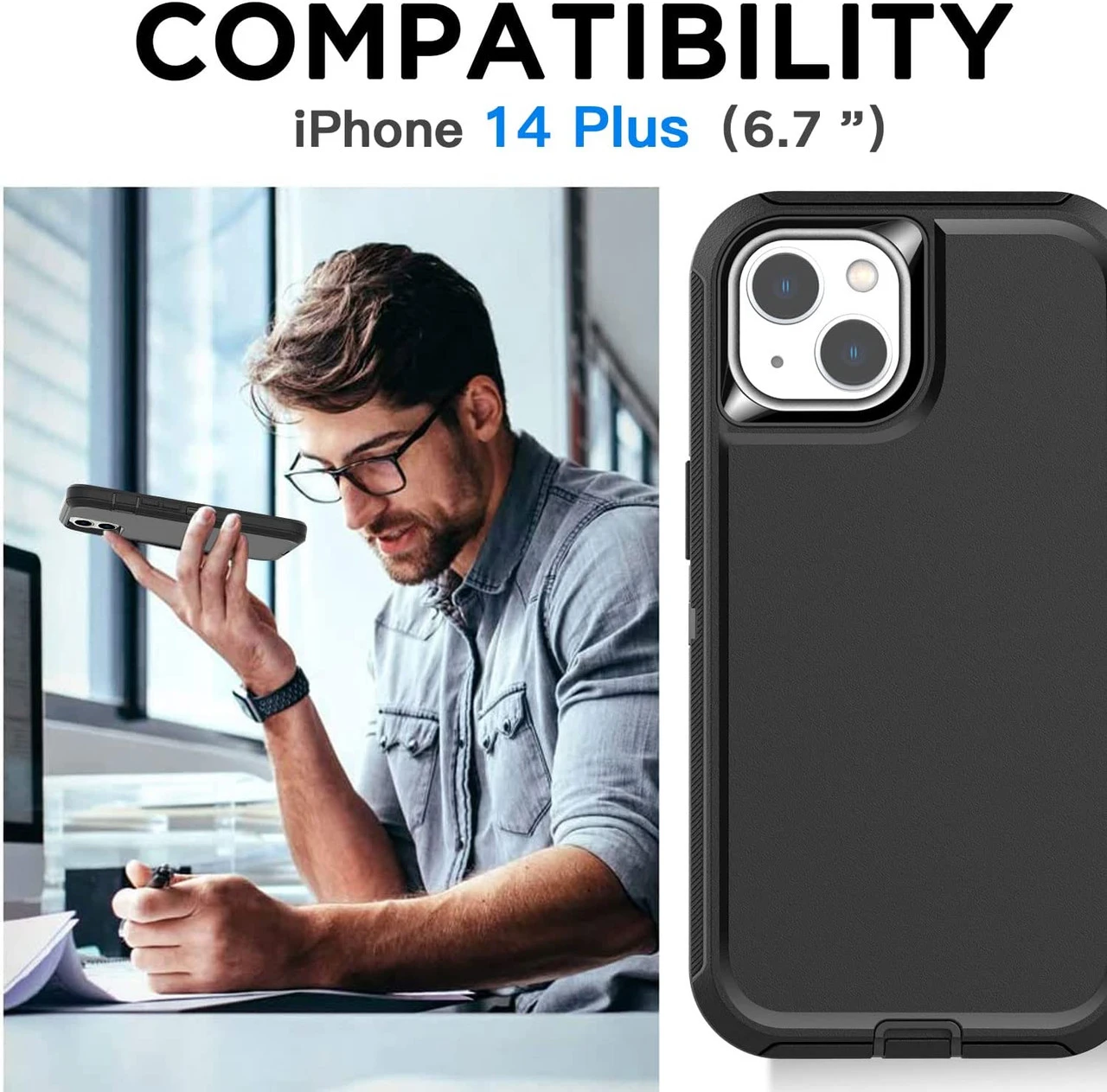 - 1 x Black Tough Military Grade Drop Proof Defender Case For iPhone 14 Plus