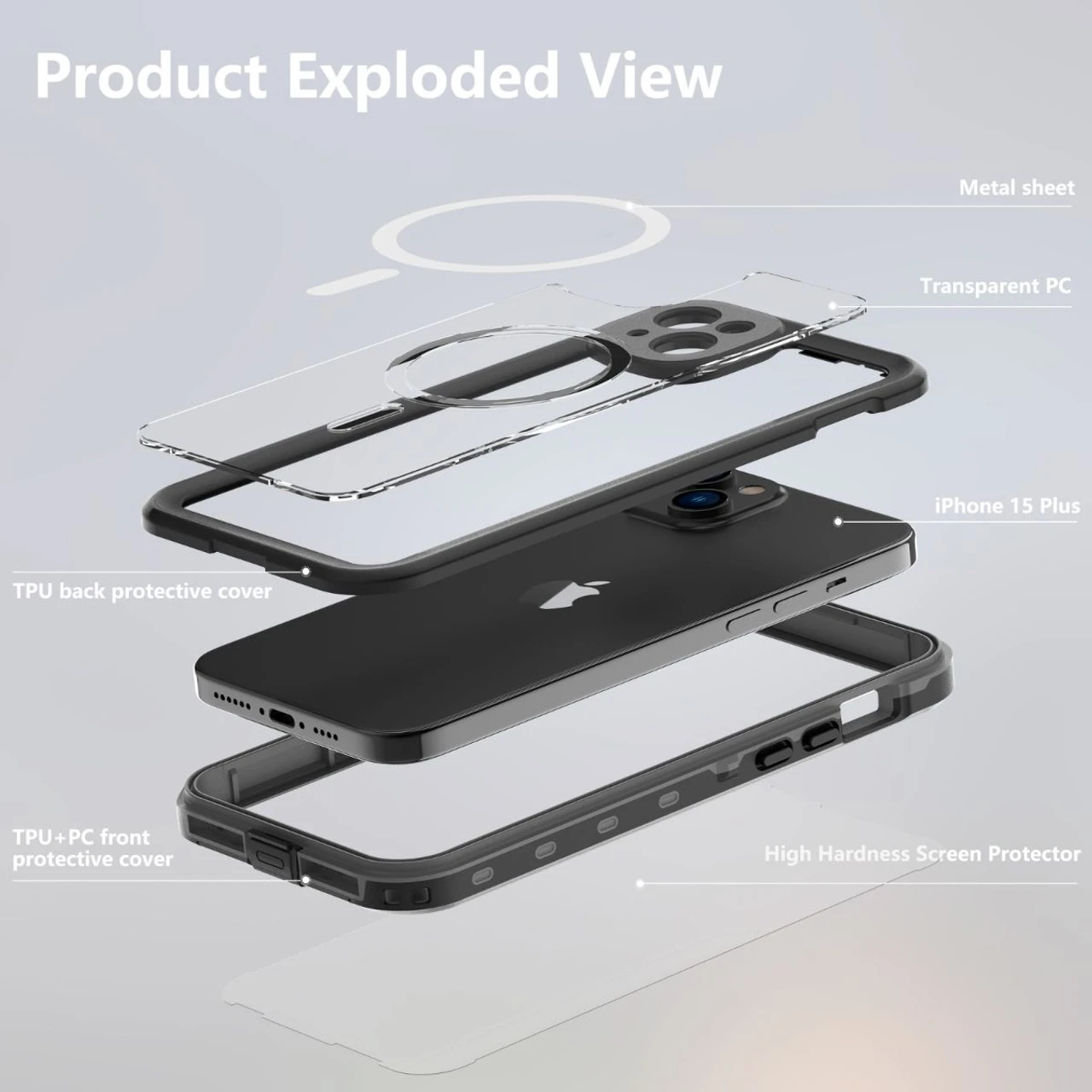 - 1 x Black Waterproof Heavy Duty Magsafe Case For iPhone 15 Plus