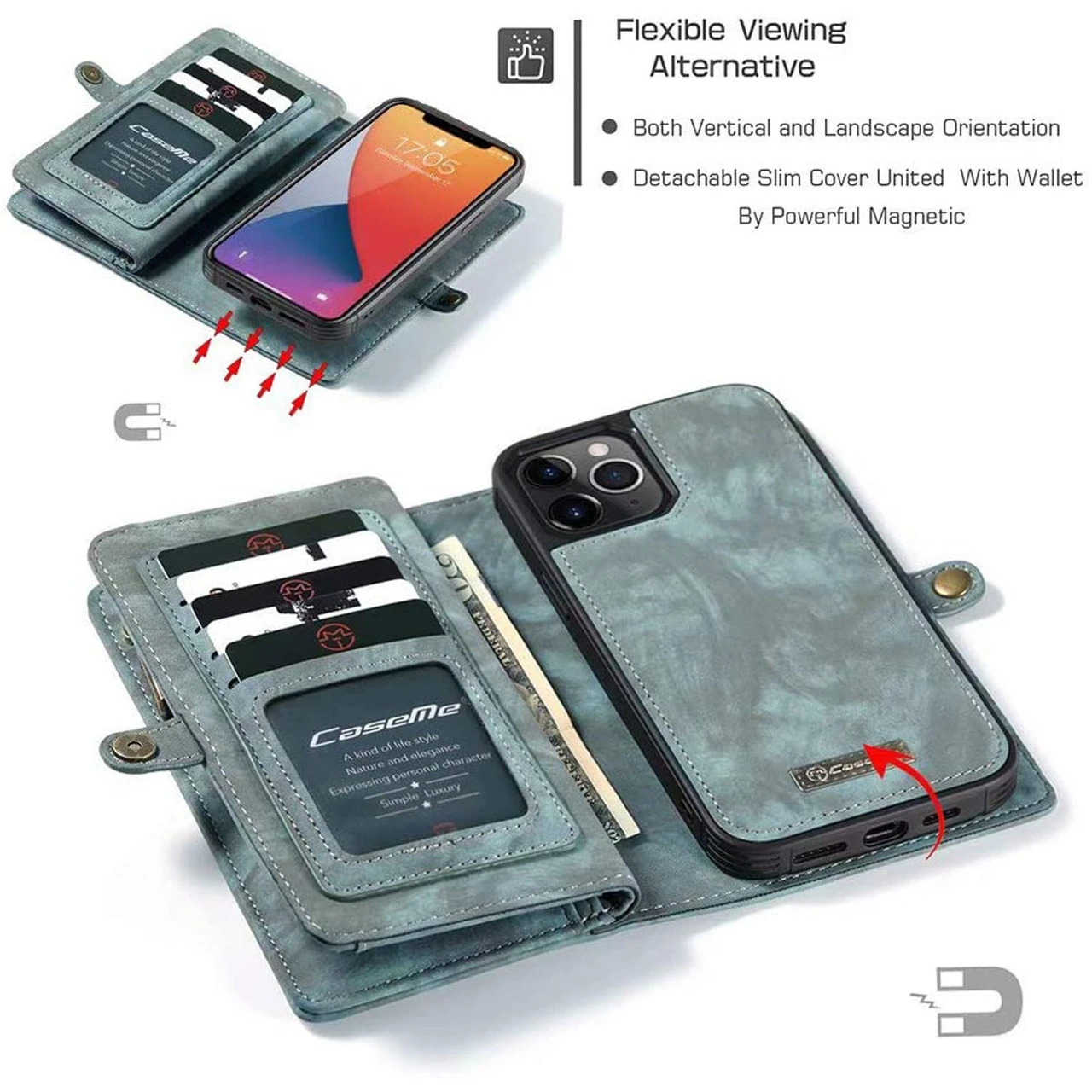 - Perfect Wallet Case for iPhone 12 / 12 Pro (6.1-inch): 2 in 1 wallet design, wallet pouch purse + magnetic detachable phone case. Attention: Please double check your mobile phone model and select the correct size.