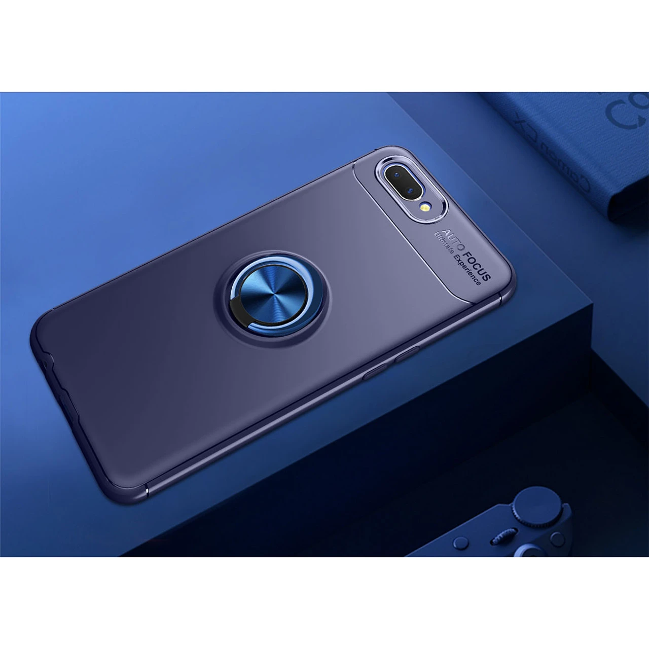1 x Blue Oppo AX5s Shock Proof Metal Circle Holder 360 Ring Stand Case