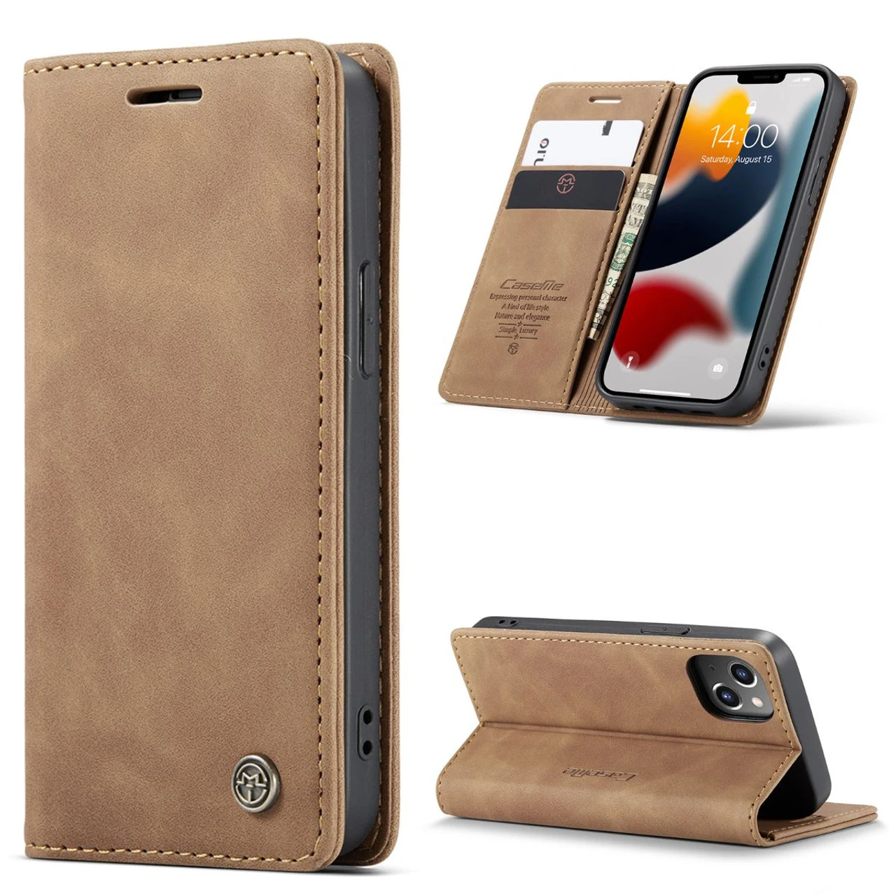 Brown CaseMe Slim 2 Card Slot Classy Wallet Case For iPhone 13 Mini