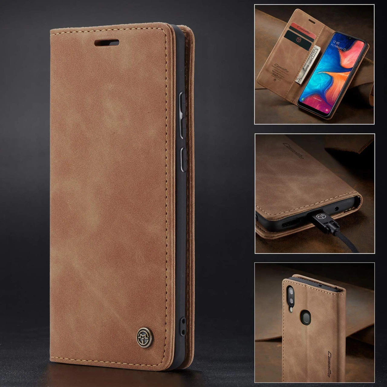 Brown CaseMe Compact Flip Classy Wallet Case For Galaxy A20 / A30