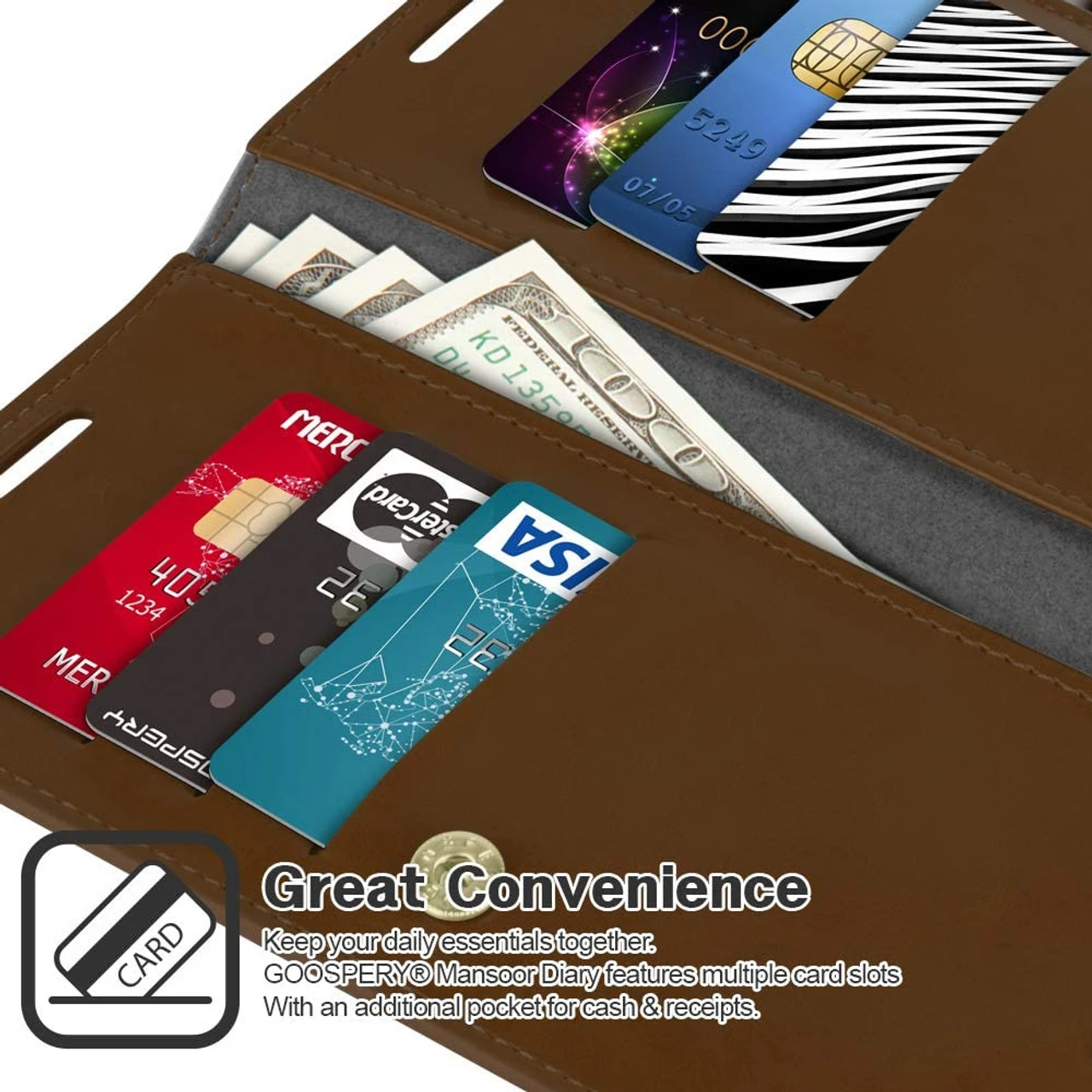 Designed with an attached center flap to provide more compartments for credit/ID cards and cash compared to other diary type cases out there, eliminating the need to carry a separate wallet
