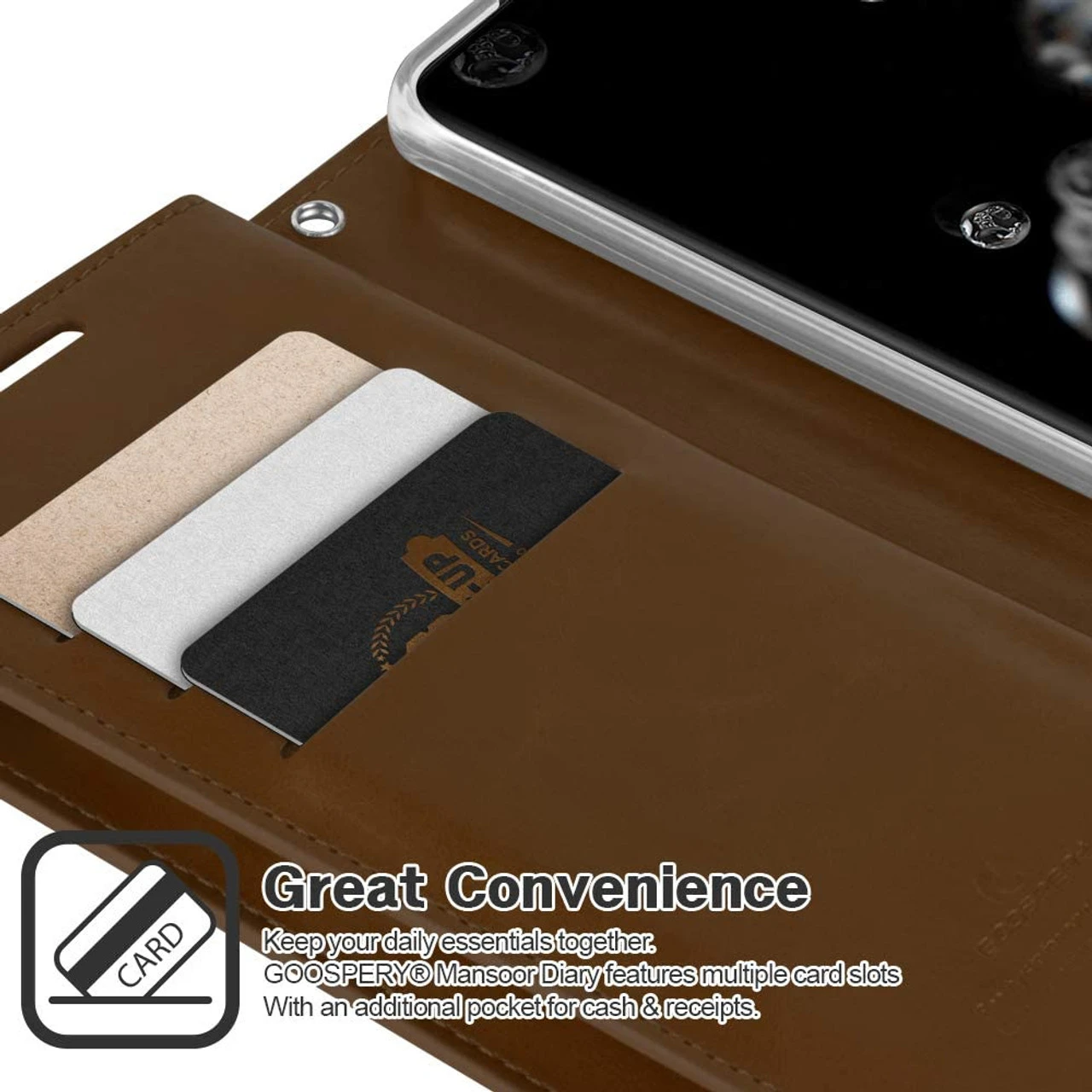 - 1 x Brown Galaxy S20 Ultra Genuine Mercury Mansoor Wallet Card Case