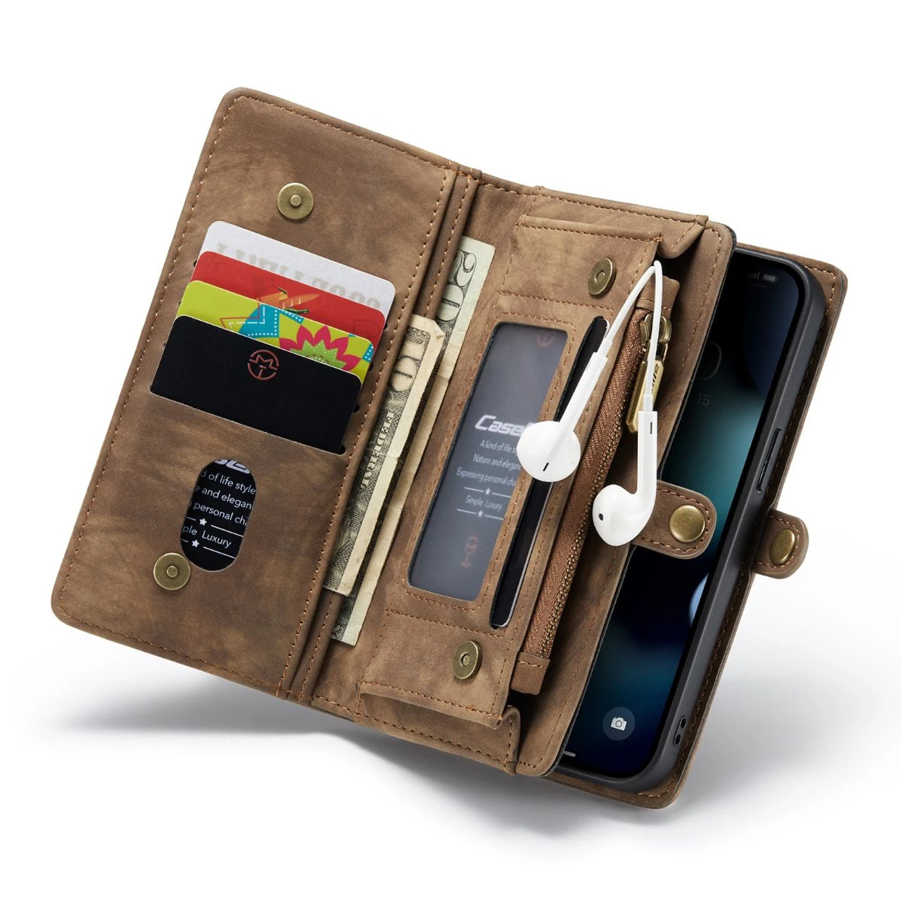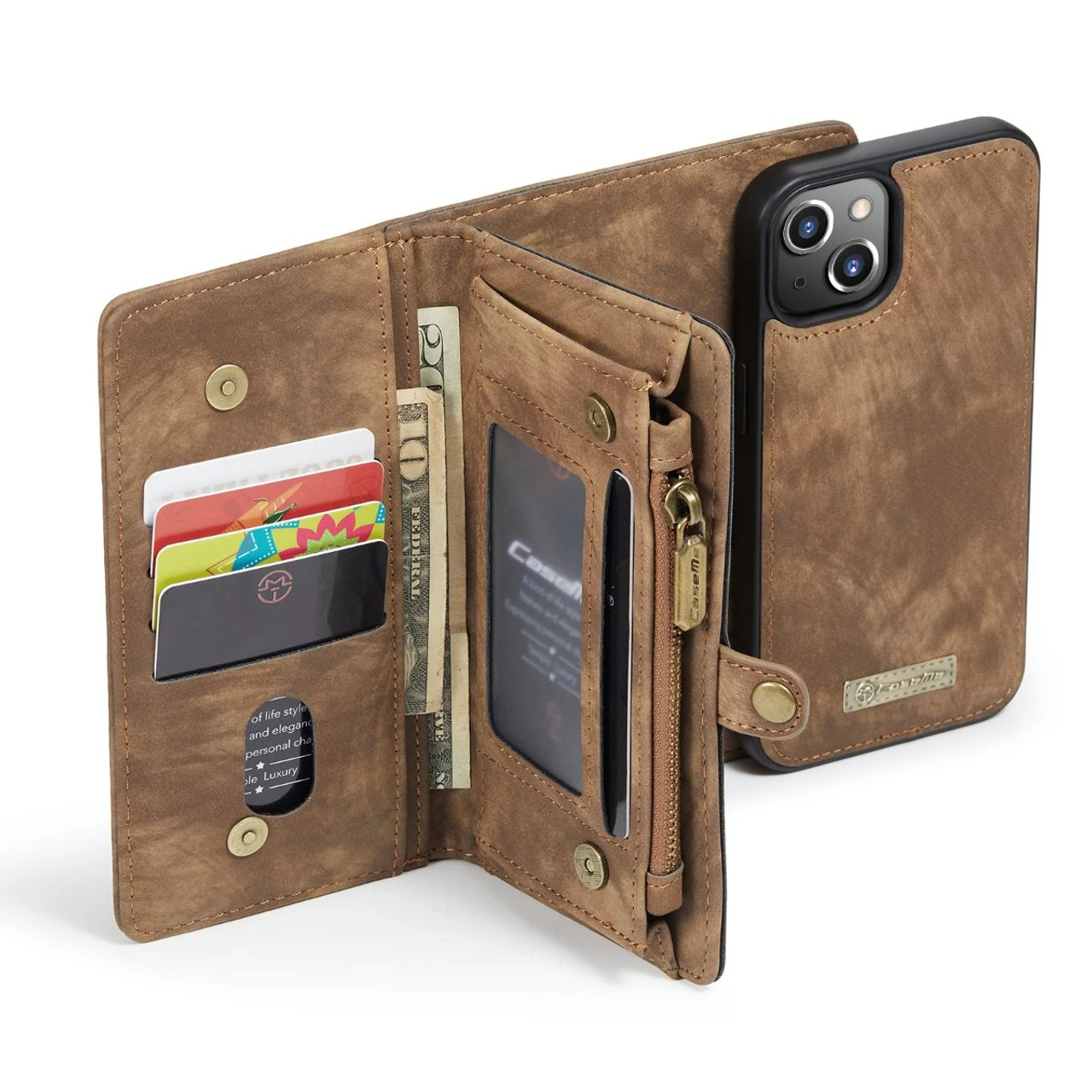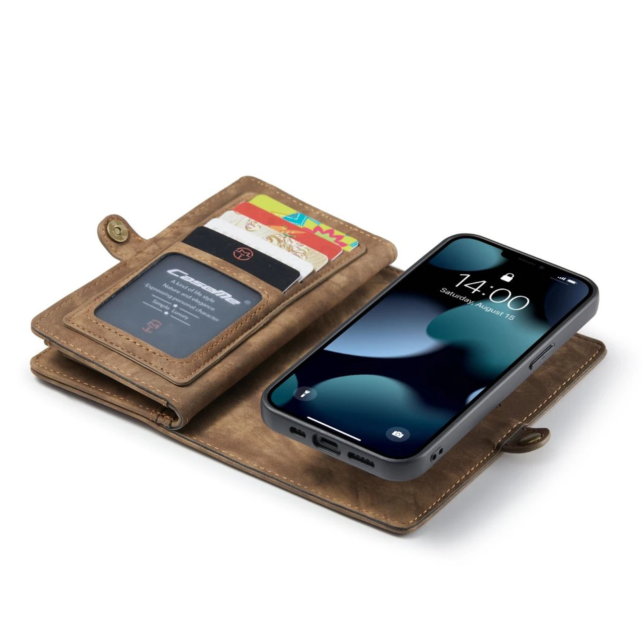 Brown iPhone 13 Mini 2 in 1 Multi-Functional Wallet Shock Proof Case