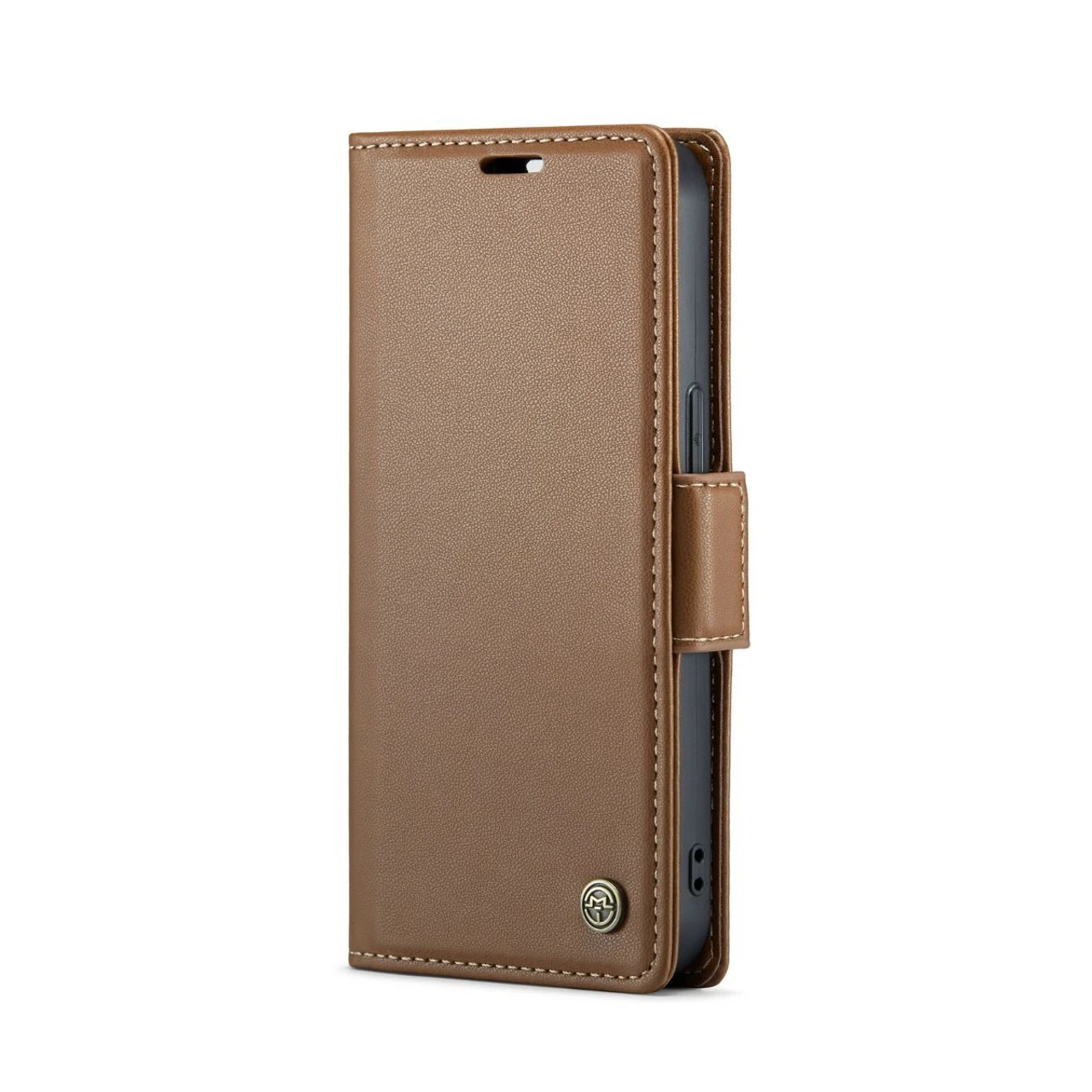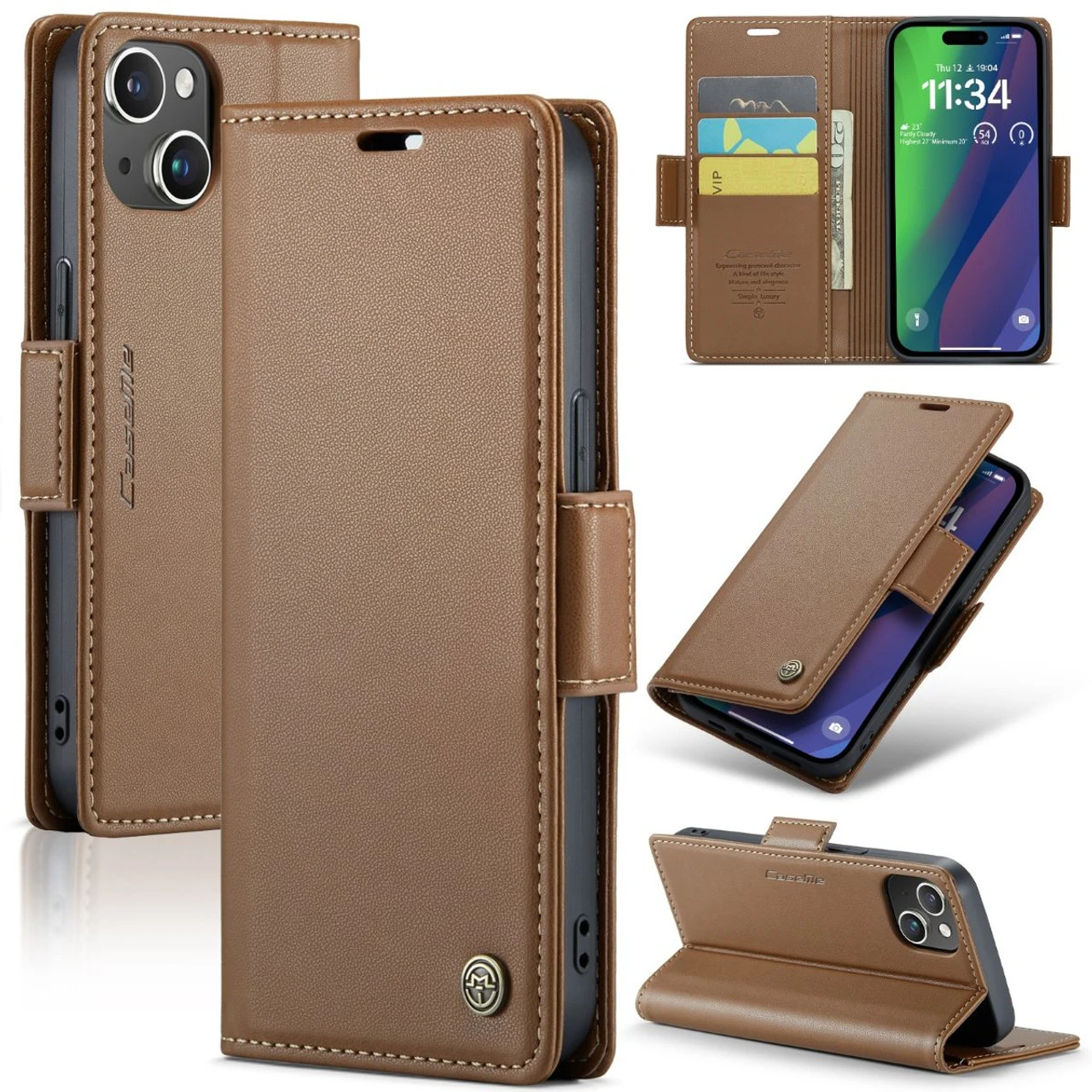 Brown iPhone 15 Plus CaseMe Slim Luxury 3 Card Slot Wallet Case