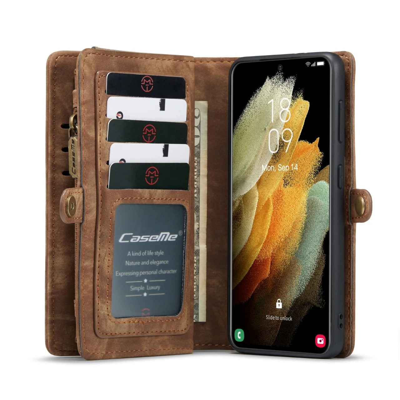 Brown Multi-Functional Wallet Detachable Magnetic Case For Galaxy S21