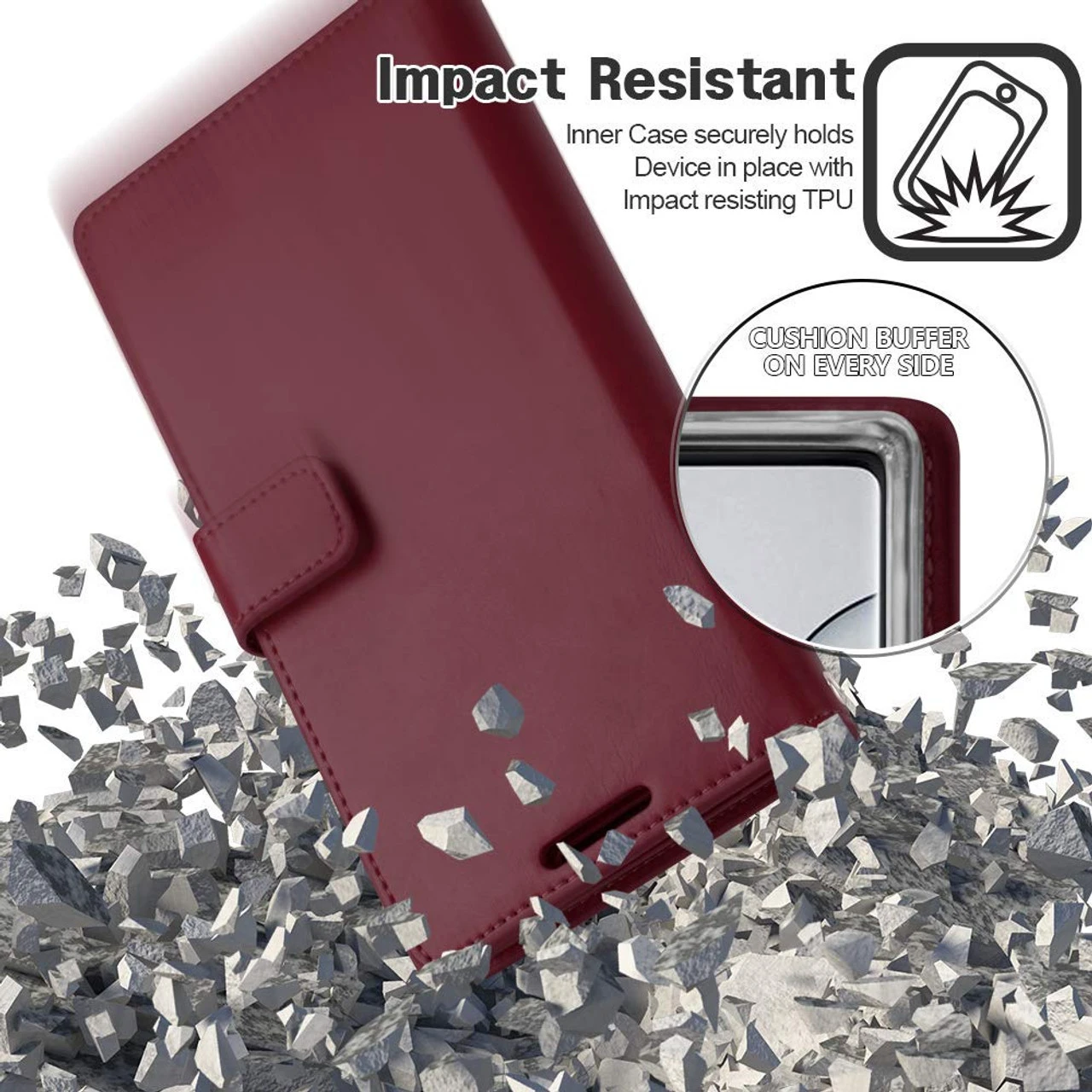 Designed with an attached center flap to provide more compartments for credit/ID cards and cash compared to other diary type cases out there, eliminating the need to carry a separate wallet.