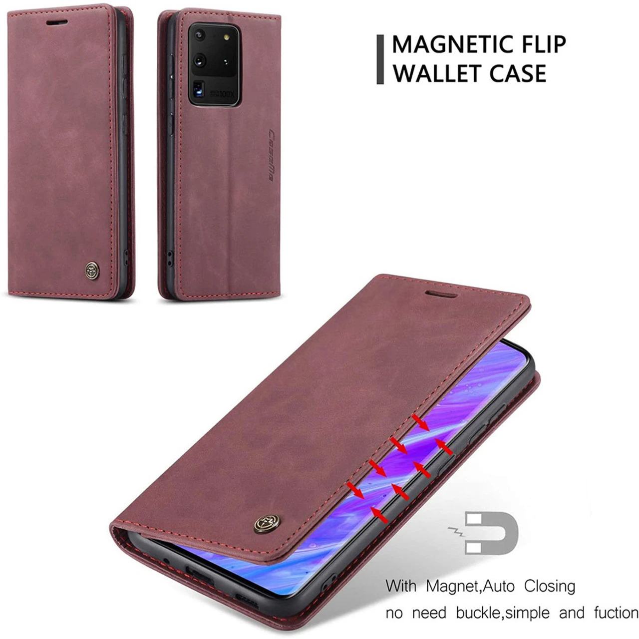 Classy Wine Galaxy S20 Ultra CaseMe Wallet Magnetic Card Holder Case