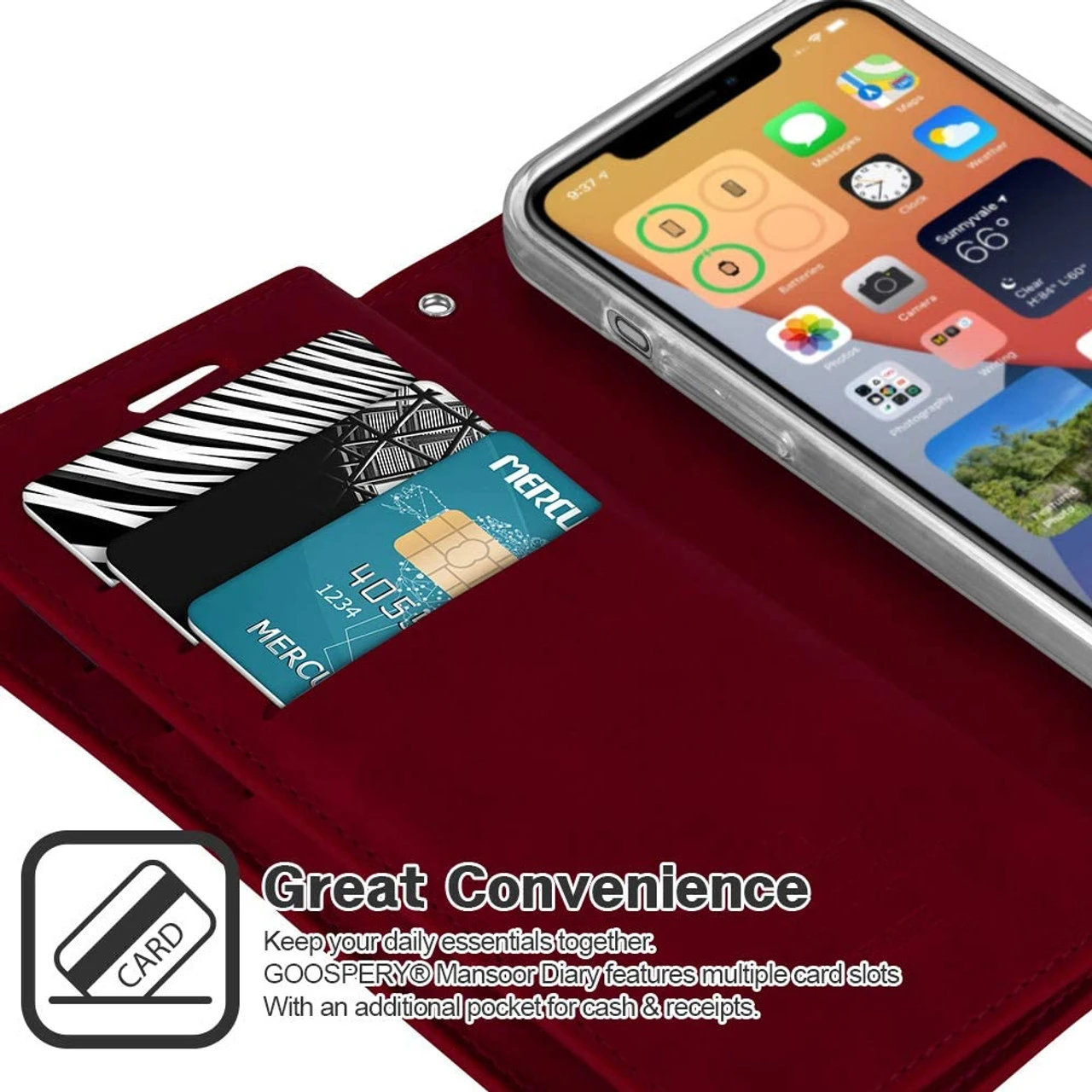 - 1 x Classy Wine Mercury Mansoor Diary Wallet Case For iPhone 12 / 12 Pro