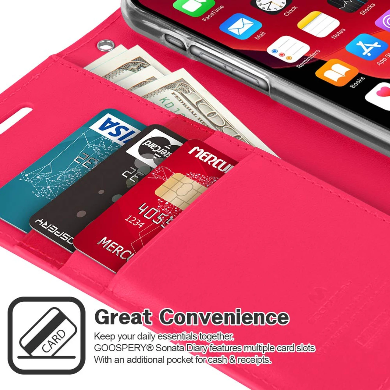 - 1 x Fashionable Hot Pink iPhone 11 Pro Mercury Sonata Diary Wallet Case