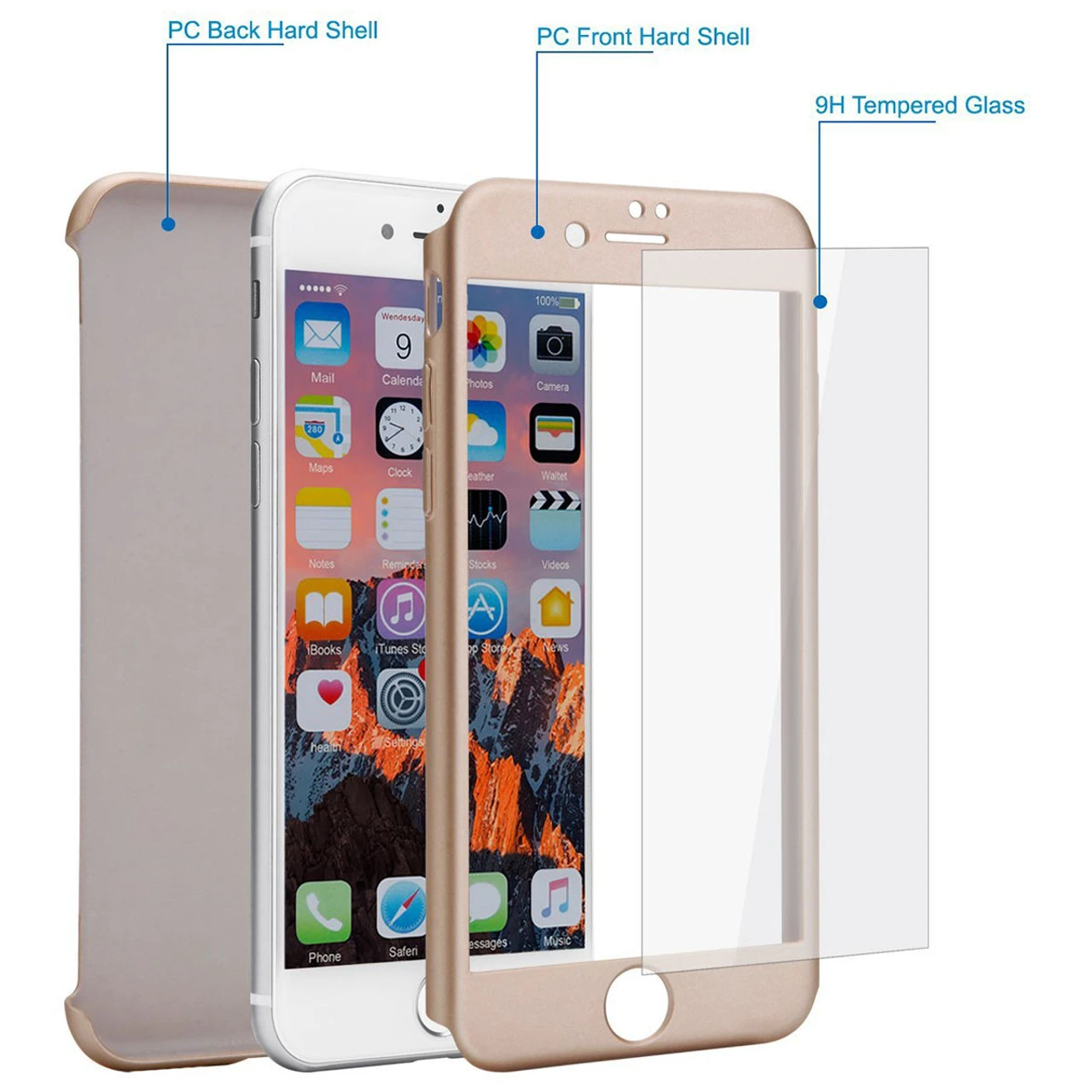 - Â Â Â 1 x Gold iPhone 8 Dual Layer 360 Degree Protection Case + Tempered Glass